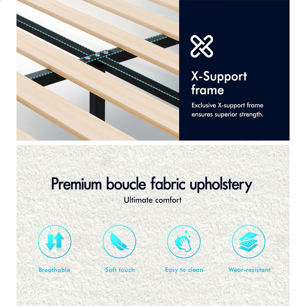 ALFORDSON Bed Frame Queen Size Wooden Slats Platform Boucle White Paula