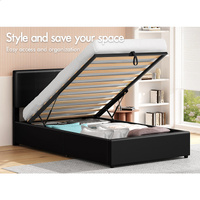 ALFORDSON Bed Frame Single Gas Lift Storage Adjustable Headboard Black LURIA