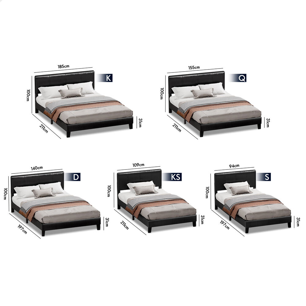 ALFORDSON Bed Frame Single Size Mattress Base Platform Leather Black Linus