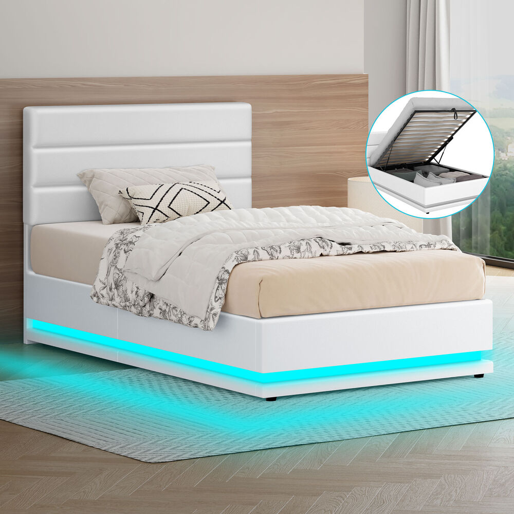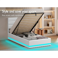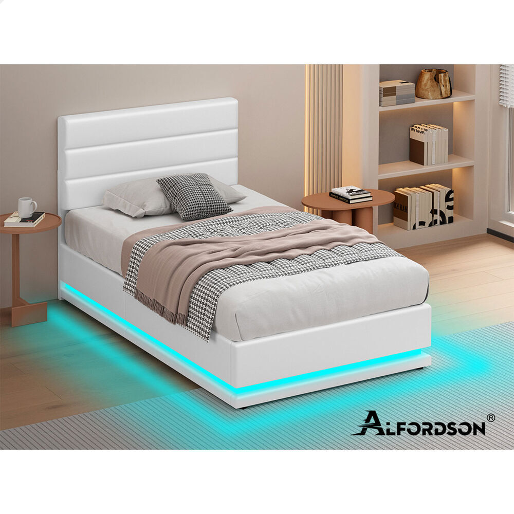 ALFORDSON Bed Frame Single Size Platform RGB LED Gas Lift Base Storage White