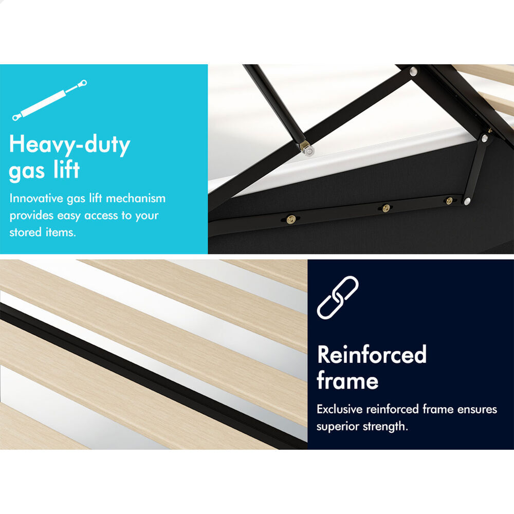 Quality counts - Constructed of durable wood slats and reinforced frame, this bed frame provides you with full sense of security. The heavy-duty gas lift mechanism allows you to effortlessly raise the mattress platform, providing easy access to the storage compartment.