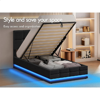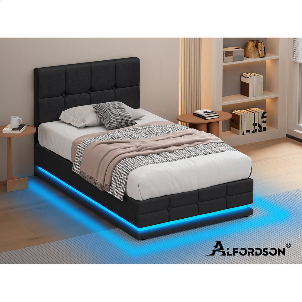 ALFORDSON Bed Frame Single Size Platform RGB LED Gas Lift Base Storage Charcoal
