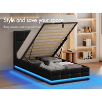 ALFORDSON Bed Frame Single Size Platform RGB LED Gas Lift Base Storage Black