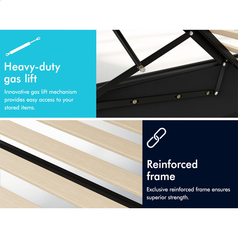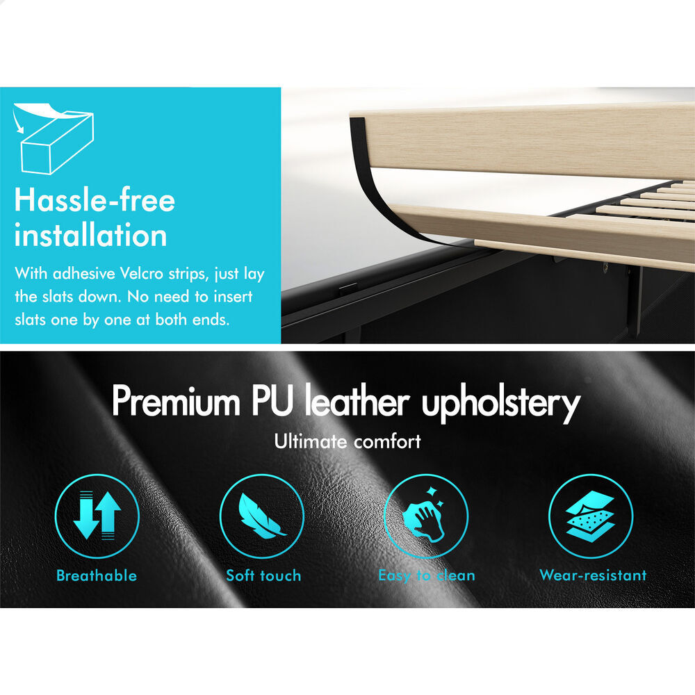 Quality counts - Constructed of durable wood slats and reinforced frame, this bed frame provides you with full sense of security. The heavy-duty gas lift mechanism allows you to effortlessly raise the mattress platform, providing easy access to the storage compartment. What's more, with adhesive Velcro strips, you can just lay the slats down, without inserting slats one by one at both end caps. Enjoy hassle-free installation!