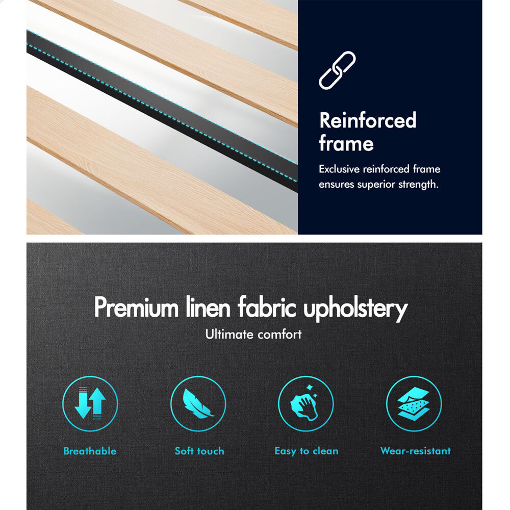 ALFORDSON Bed Frame Single Size Tufted Headboard Modern Fabric Charcoal Meduna