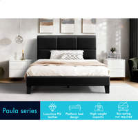 ALFORDSON Bed Frame Single Size Wooden Slats Platform Leather Black Paula