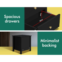 ALFORDSON Bedside Table Hamptons Nightstand Storage Side End 2 Drawers Black