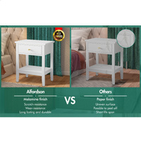 Made of superior E1 grade and 15mm thick particle board for table frame, this bedside table is designed to be highly durable. Unlike some other sellers, we have no compromise on materials used. Instead of flimsy paper finish, our bedside table is well made with melamine finish. It is not only easy to maintain and clean, but also long lasting and durable. Being functional yet stylish, you will definitely love our bedside table.