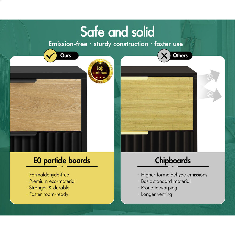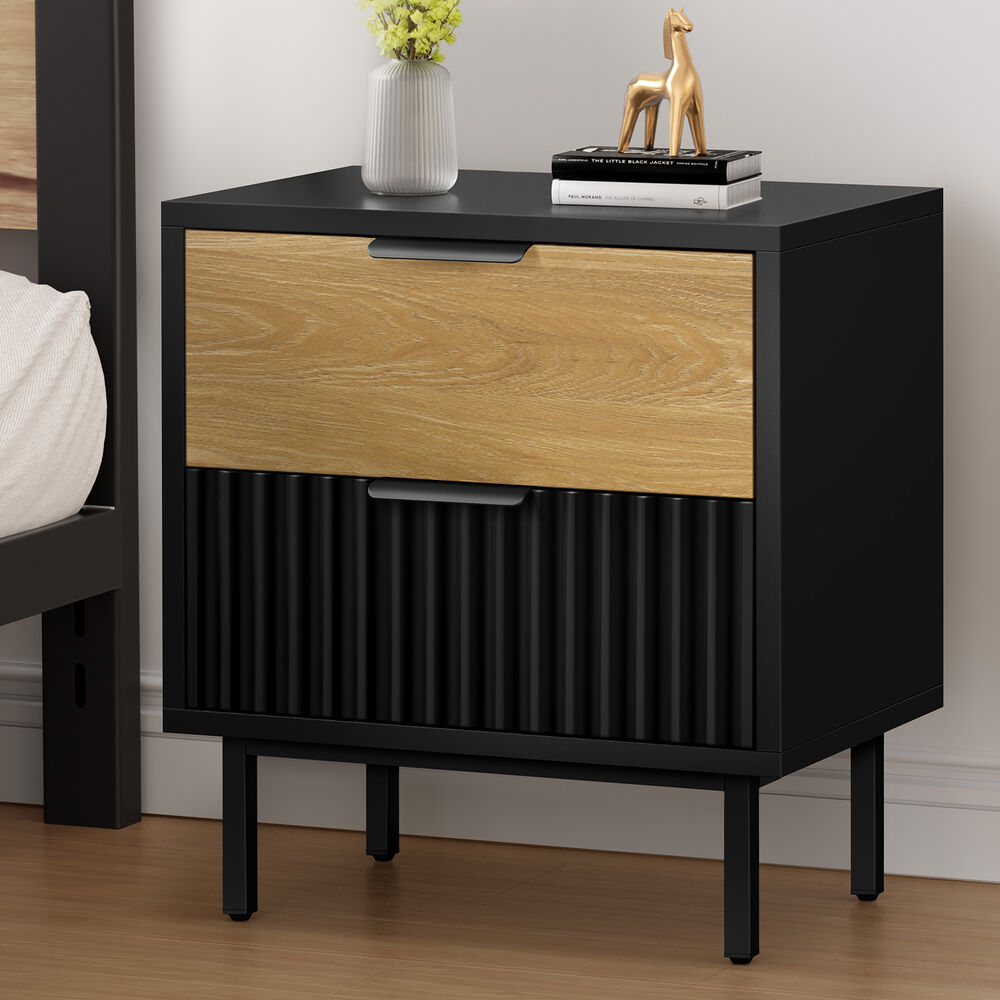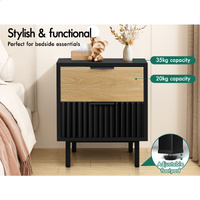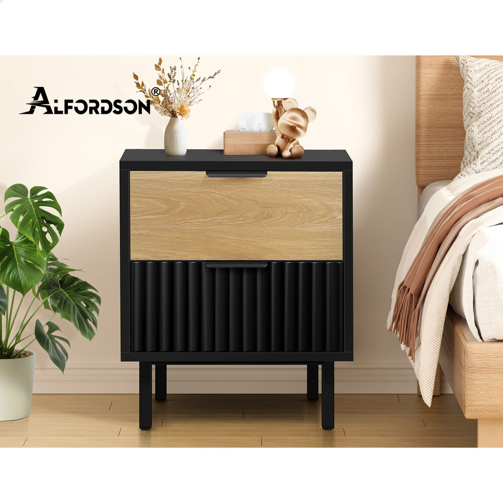 ALFORDSON Bedside Table Nightstand 2 Drawers Side Storage Cabinet Black and Wood
