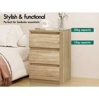 ALFORDSON Bedside Table Nightstand 3 Drawers Side End Table Wood