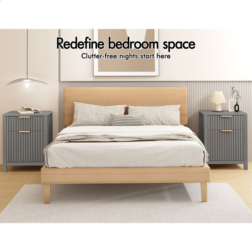 ALFORDSON Bedside Table Nightstand Side Storage 2 Drawers Cabinet Grey