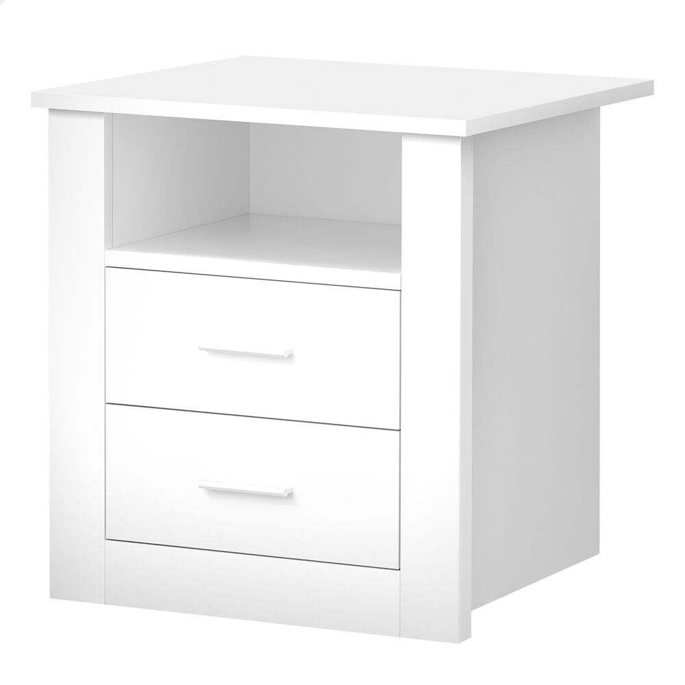 This bedside table can serve as a functional addition at the side of your bed. It provides a surface to place necessary items like a lamp, a laptop, a book, a glass of water, medicine or vitamin pills, or whatever else you may want to keep close by the bed. It also features a open shelf, which provides the perfect spot to slot your latest read, tablet or magazines. Not least, featuring 2 spacious drawers, it provides ample storage so that those items you store away in the drawers won't gather dust.