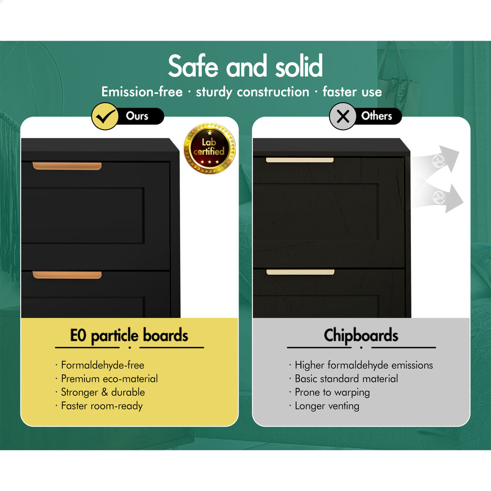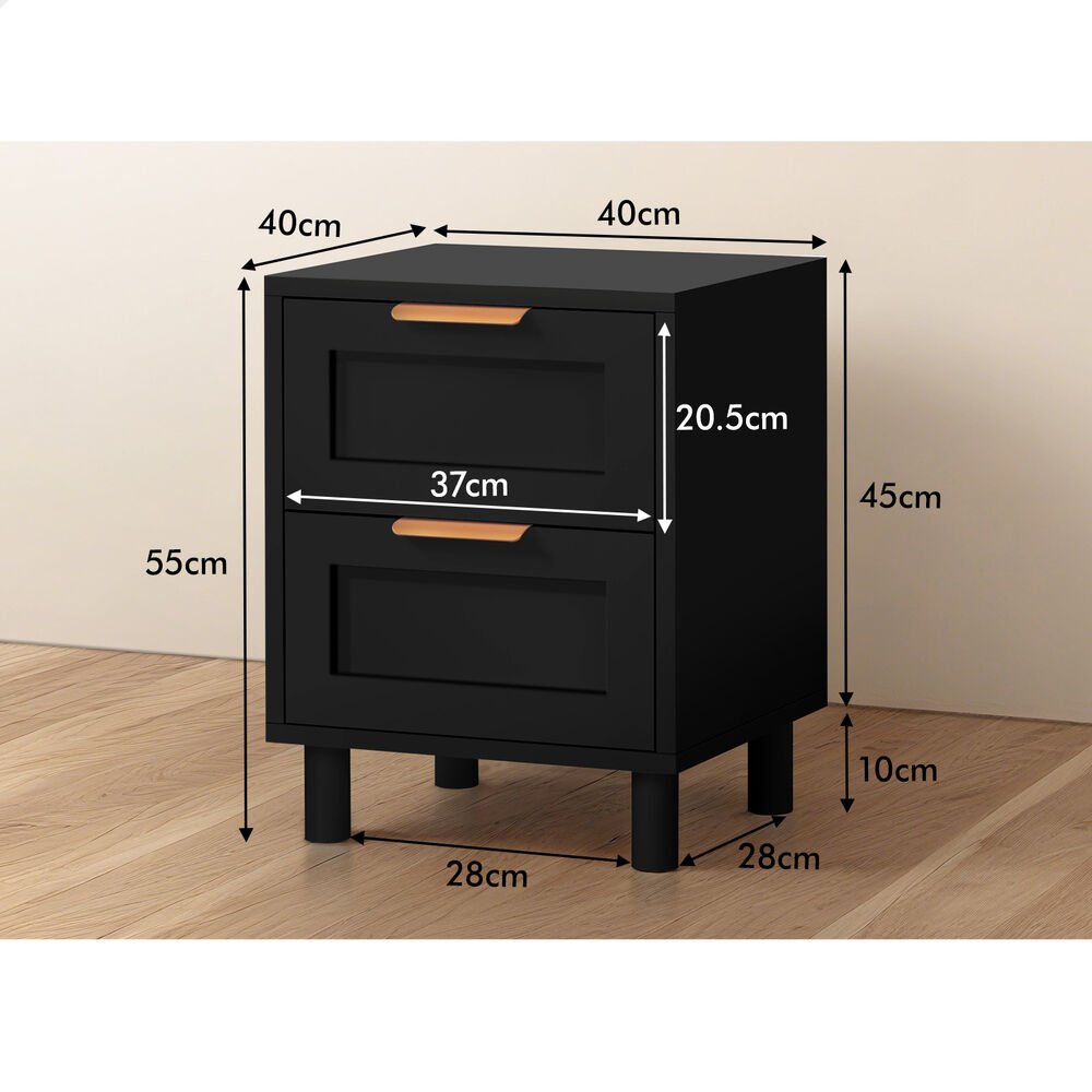 ALFORDSON Bedside Table Side Storage Nightstand 2 Drawers Cabinet Black