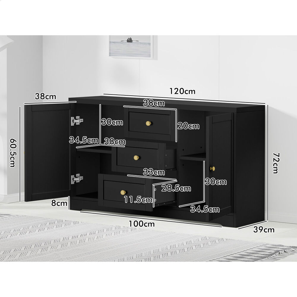 ALFORDSON Buffet Sideboard Cupboard Cabinet Storage Drawers Black Pantry Hallway