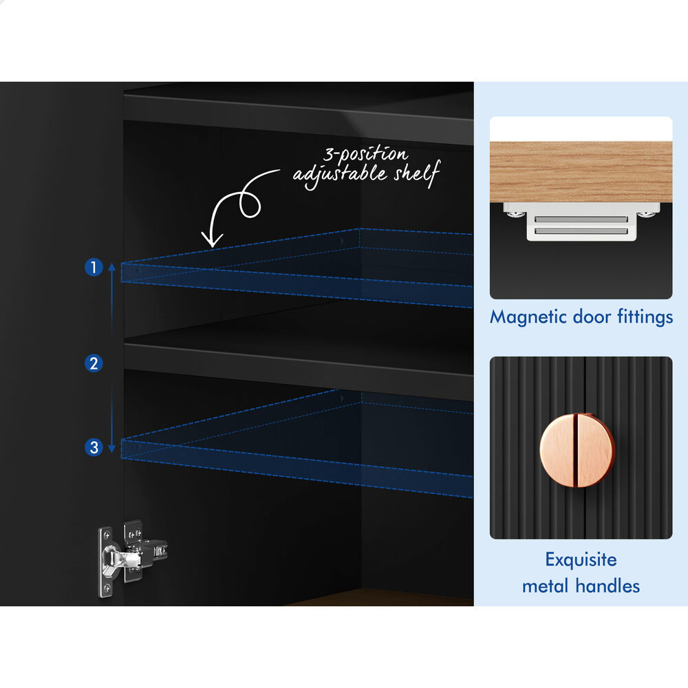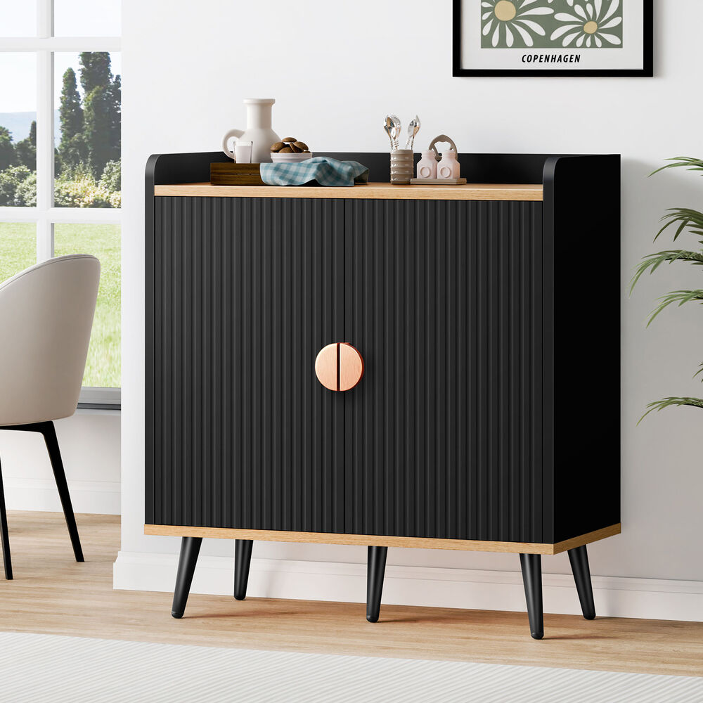 Versatile Design for Any Space - Featuring a two-tone color scheme and unique fluted doors, this sideboard seamlessly blends with modern and rustic interiors. Its versatile design allows it to complement a variety of décor styles, making it a perfect fit for any room.