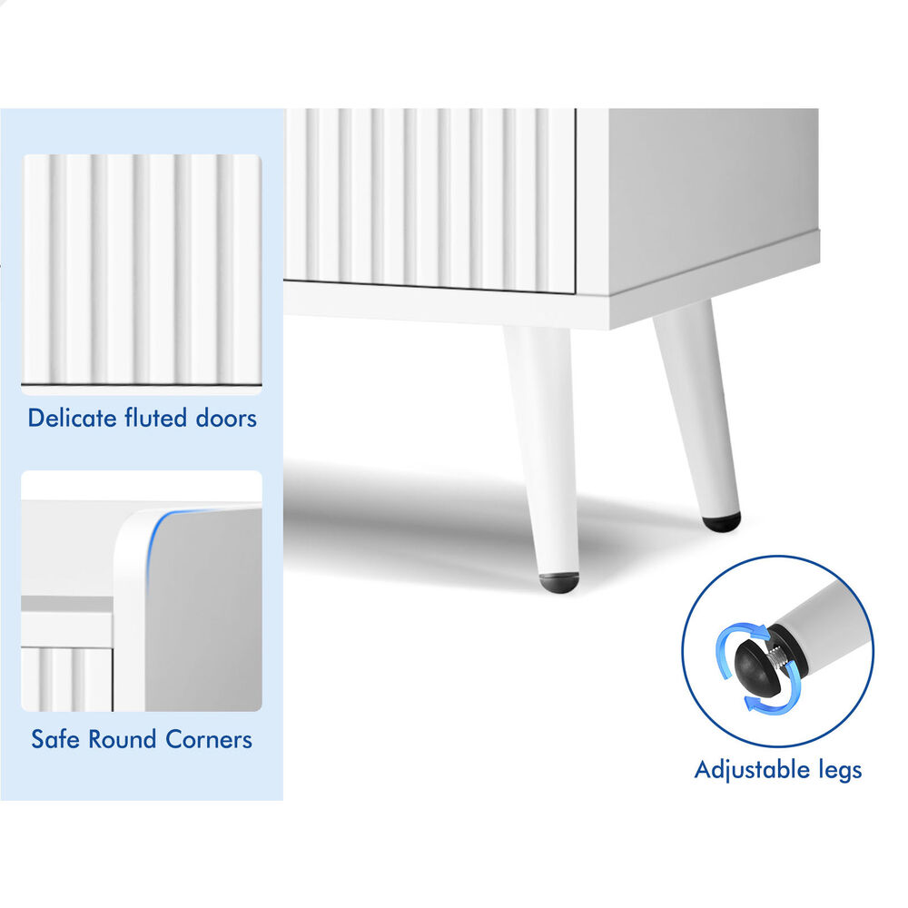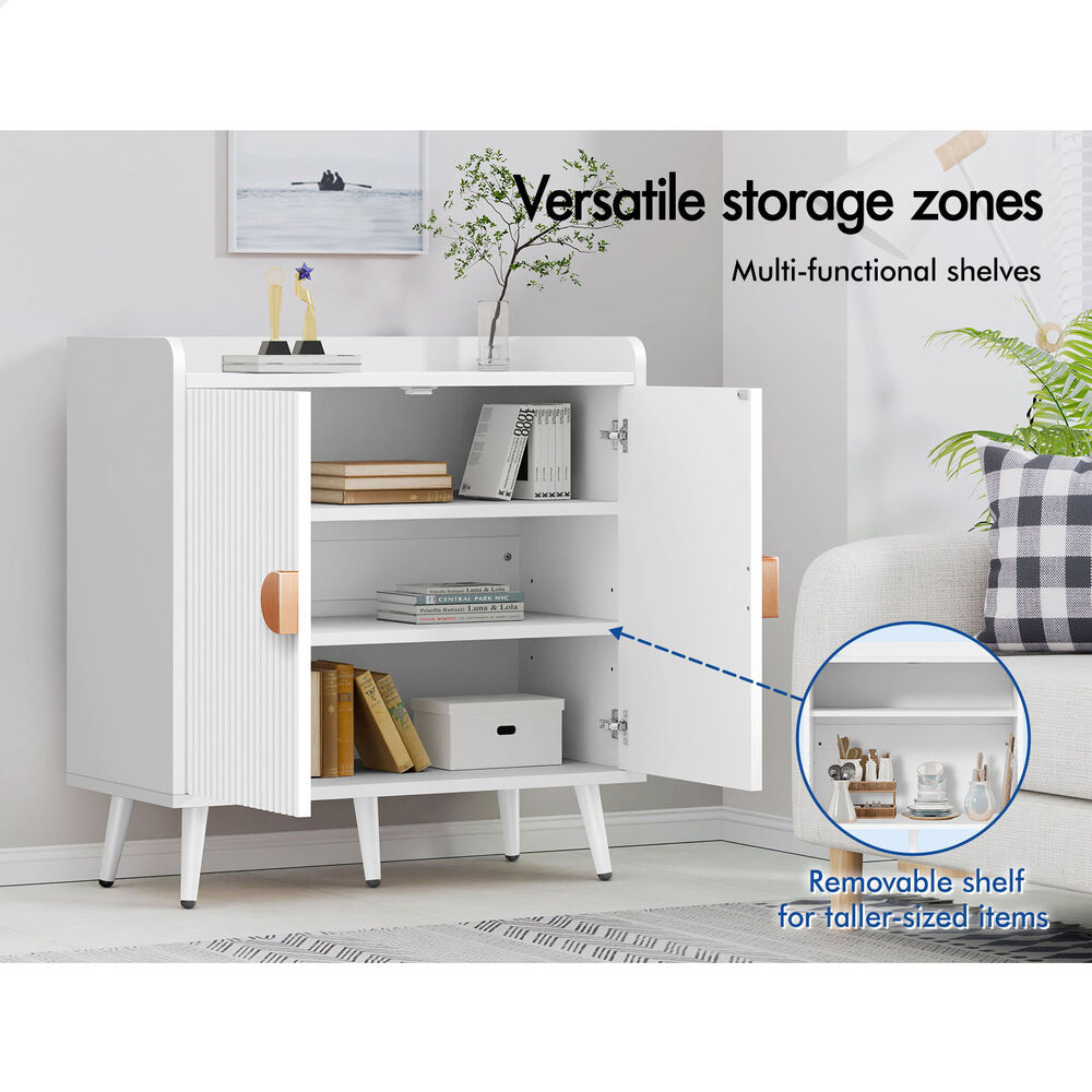 Versatile Design for Any Space - Featuring a monochrome color scheme and unique fluted doors, this sideboard seamlessly blends with modern and rustic interiors. Its versatile design allows it to complement a variety of décor styles, making it a perfect fit for any room.