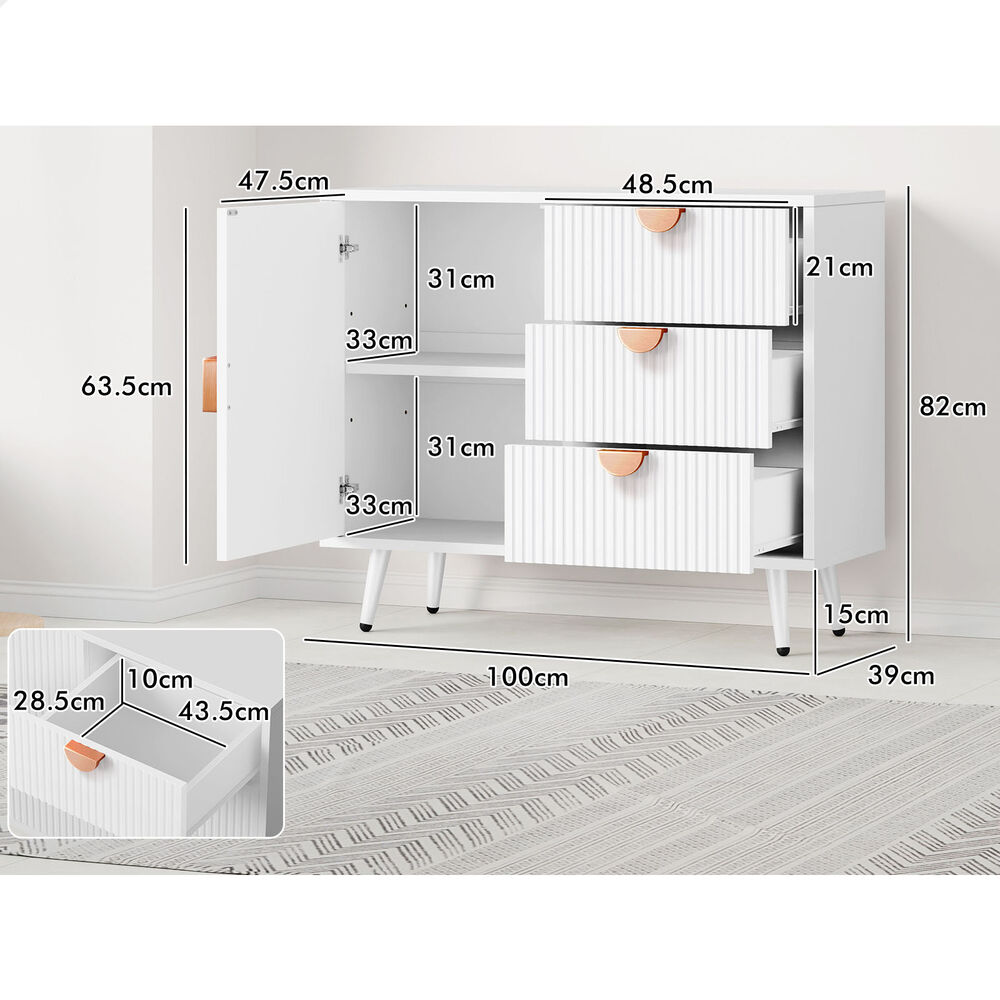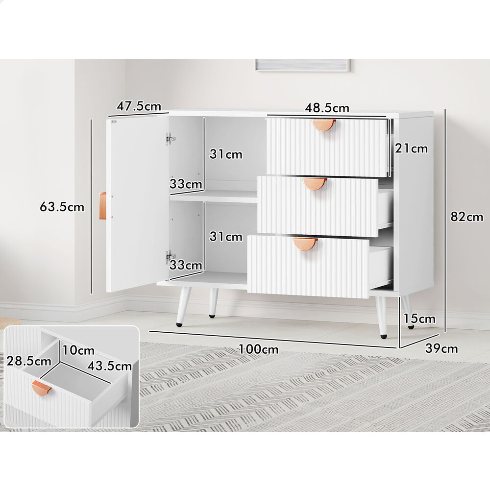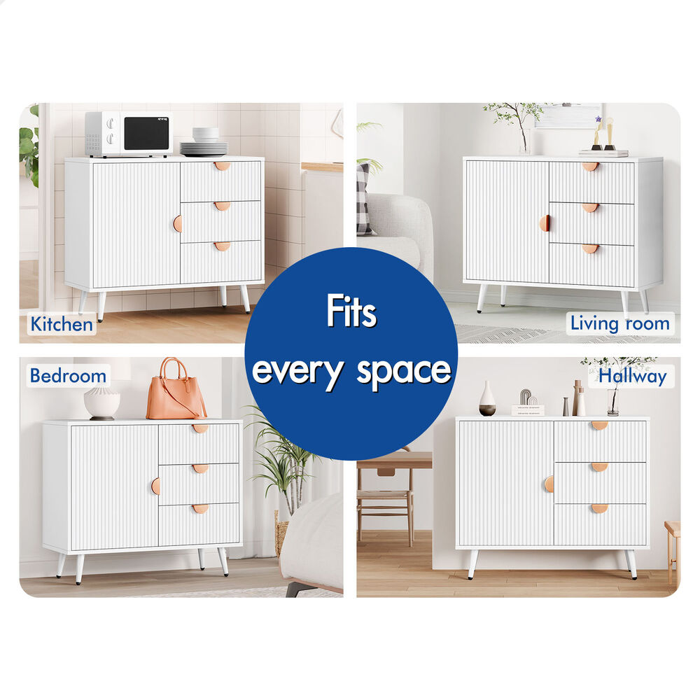 Versatile Design for Any Space - Featuring a monochrome color scheme and unique fluted doors, this sideboard seamlessly blends with modern and rustic interiors. Its versatile design allows it to complement a variety of décor styles, making it a perfect fit for any room.
