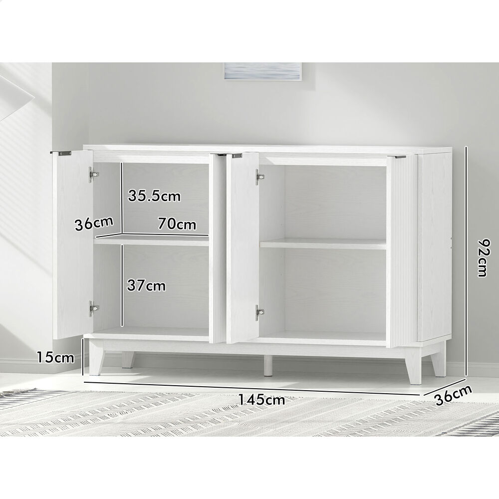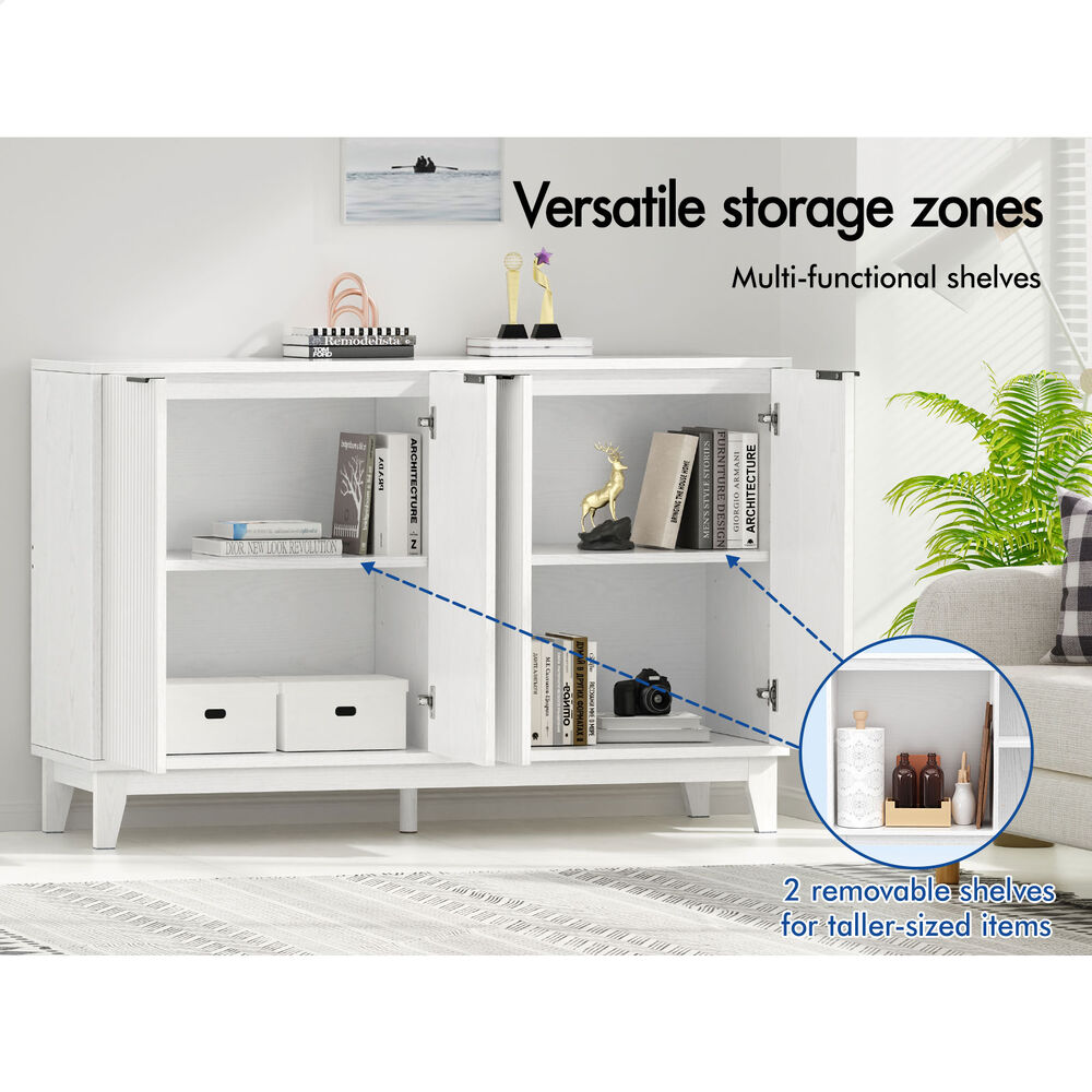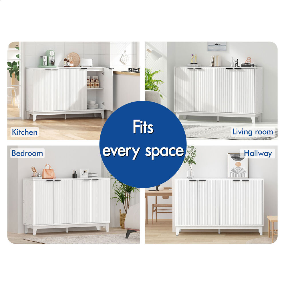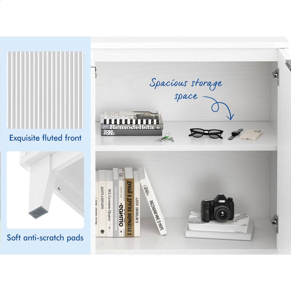 Versatile Design for Any Space - Featuring a monochrome color scheme and unique fluted doors, this sideboard seamlessly blends with modern and rustic interiors. Its versatile design allows it to complement a variety of décor styles, making it a perfect fit for any room.