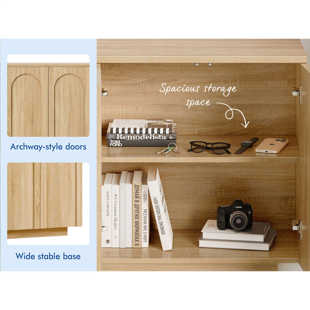 Versatile Design for Any Space - Featuring a monochrome scheme and elegant arched doors with push-to-open device, this sideboard seamlessly blends with modern and rustic interiors. Its versatile design allows it to complement a variety of décor styles, making it a perfect fit for any room.