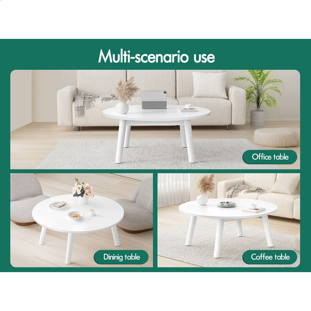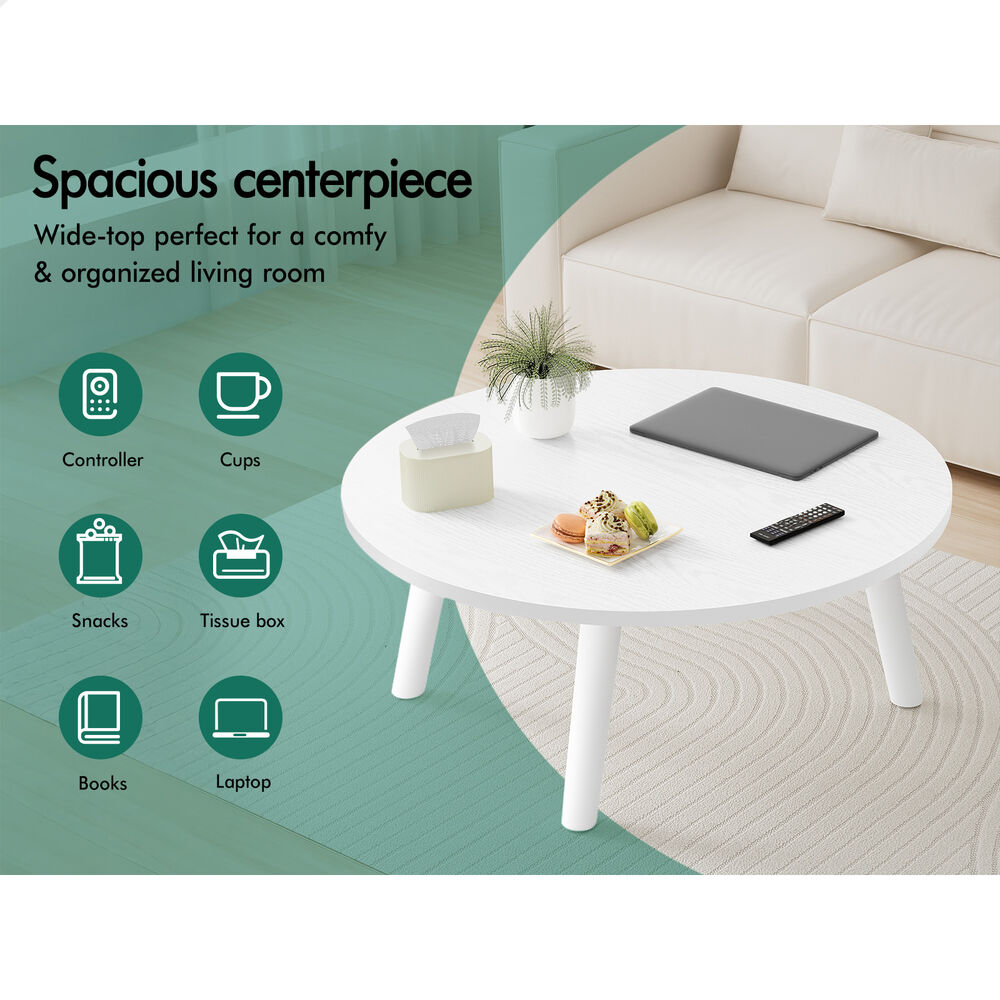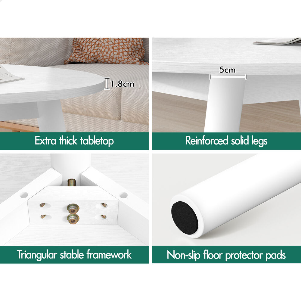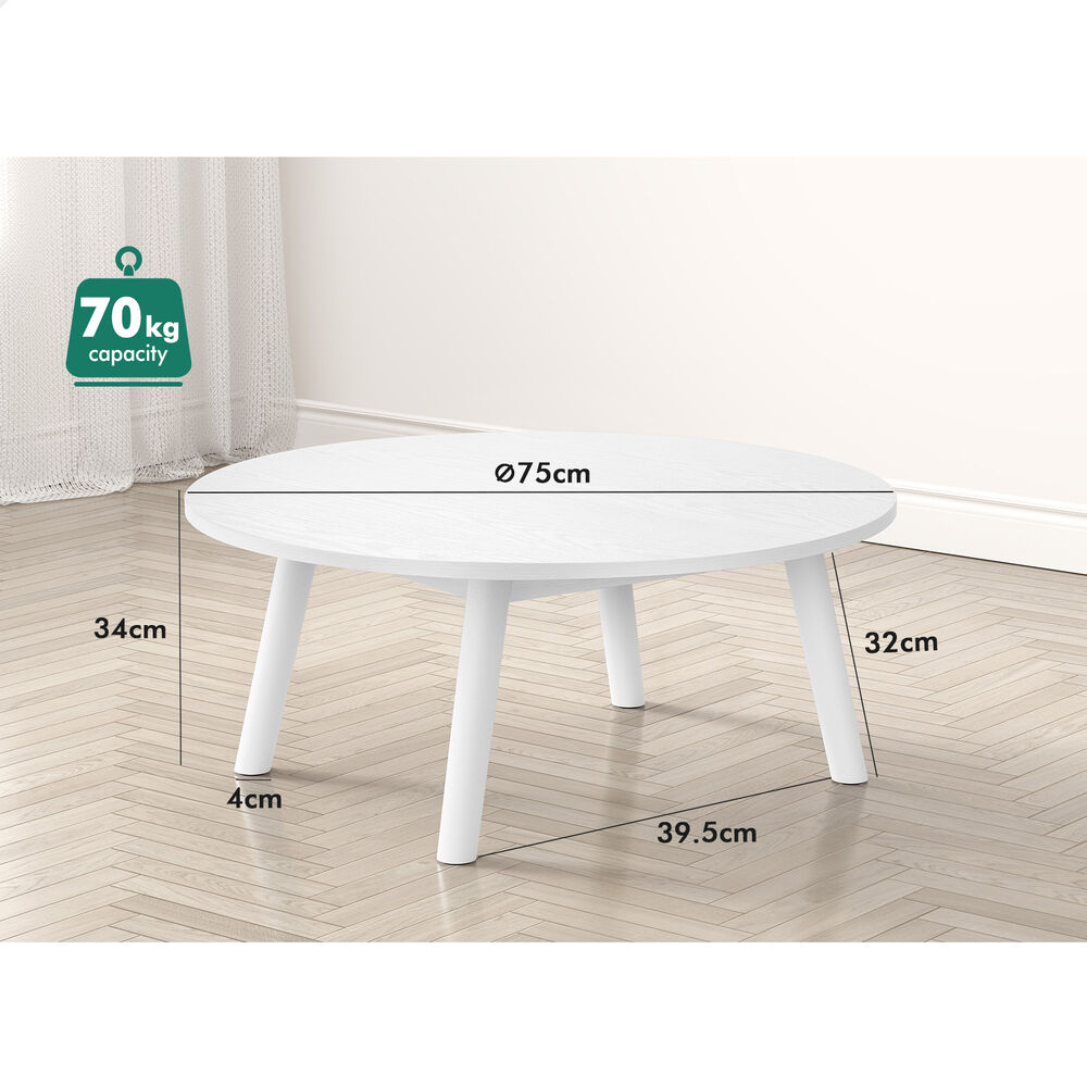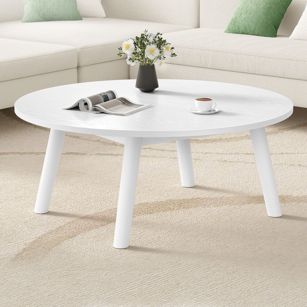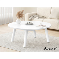 ALFORDSON Coffee Table Modern Round Table Sturdy Wooden Legs Living Room White