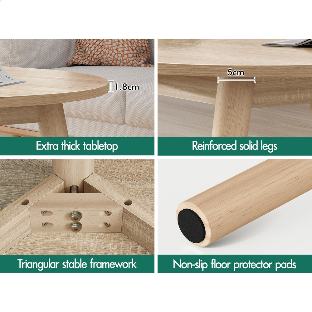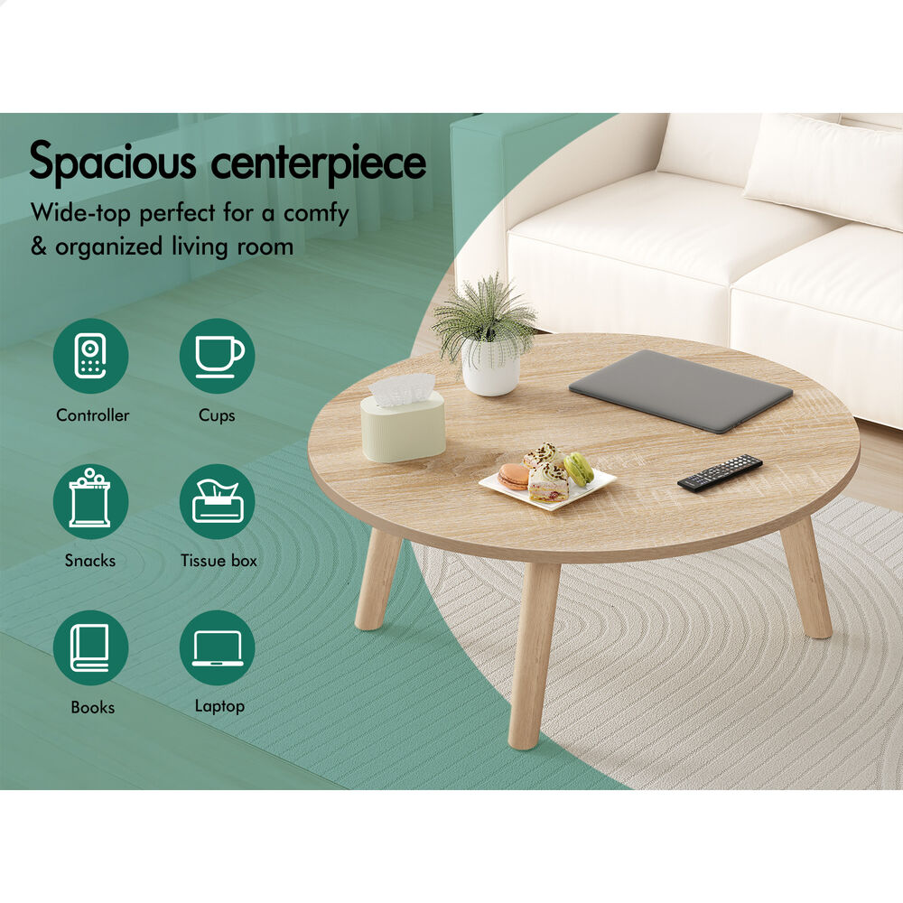 ALFORDSON Coffee Table Modern Round Table Sturdy Wooden Legs Living Room Wood