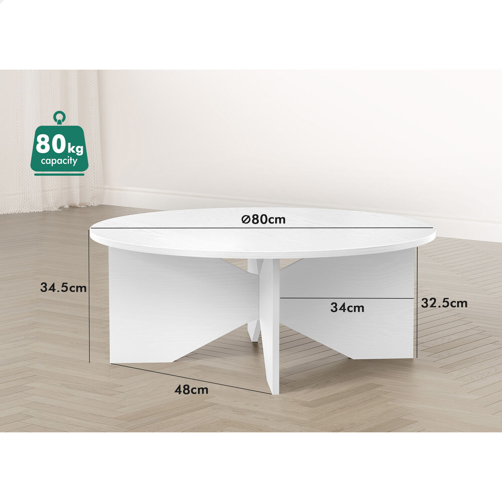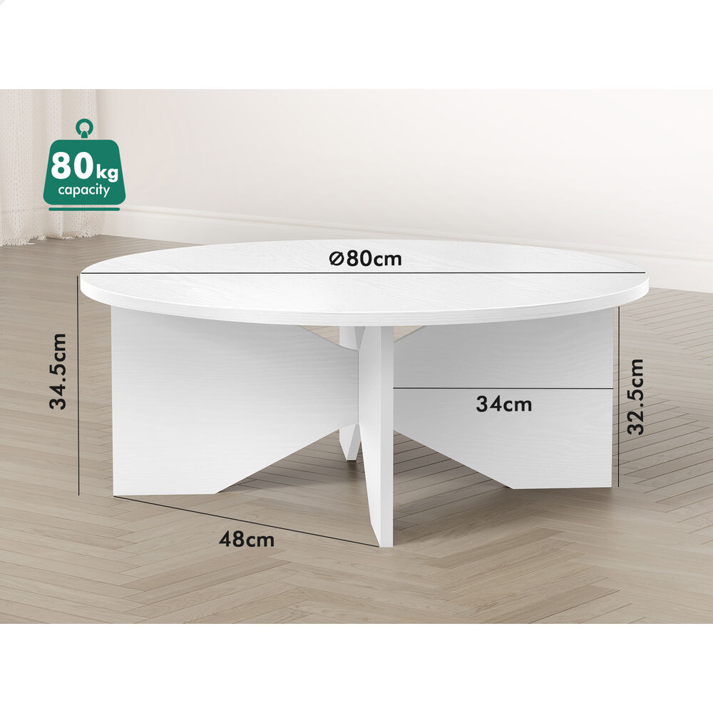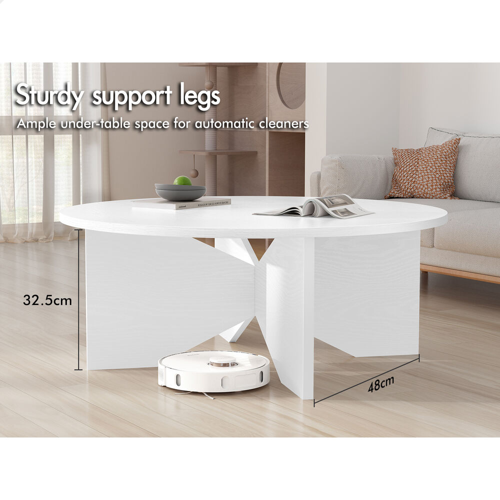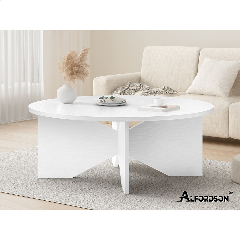 ALFORDSON Coffee Table Modern Round Table X-shape Wooden Legs Living Room White