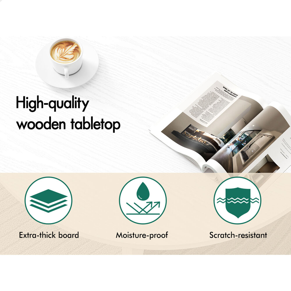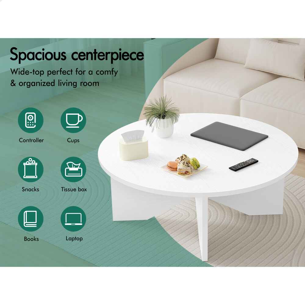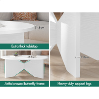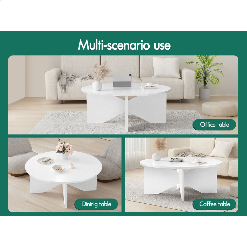 ALFORDSON Coffee Table Modern Round Table X-shape Wooden Legs Living Room White
