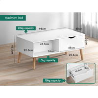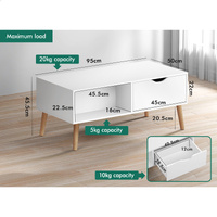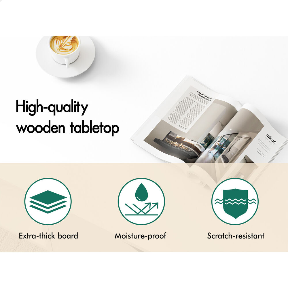 Crafted from superior E1 grade and 12mm thick particle board, our coffee table is designed to be highly durable. Unlike some other sellers, we have no compromise on materials used. Well made with melamine finish, it is waterproof, anti-scratched and easy to maintain and clean. Supported by sturdy wooden legs with non-slip foot pads, this coffee table can hold up to 50kg capacity, ensuring strong stability and durability.