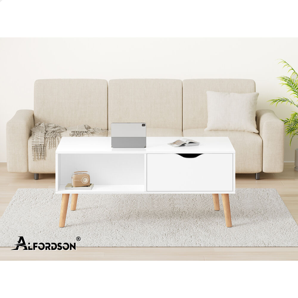 ALFORDSON Coffee Table Storage Tables 2 Drawers Shelf Modern Desk White