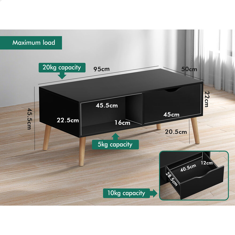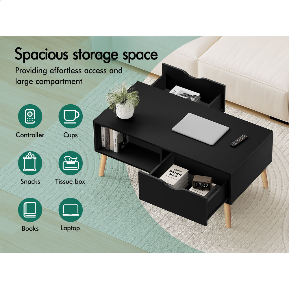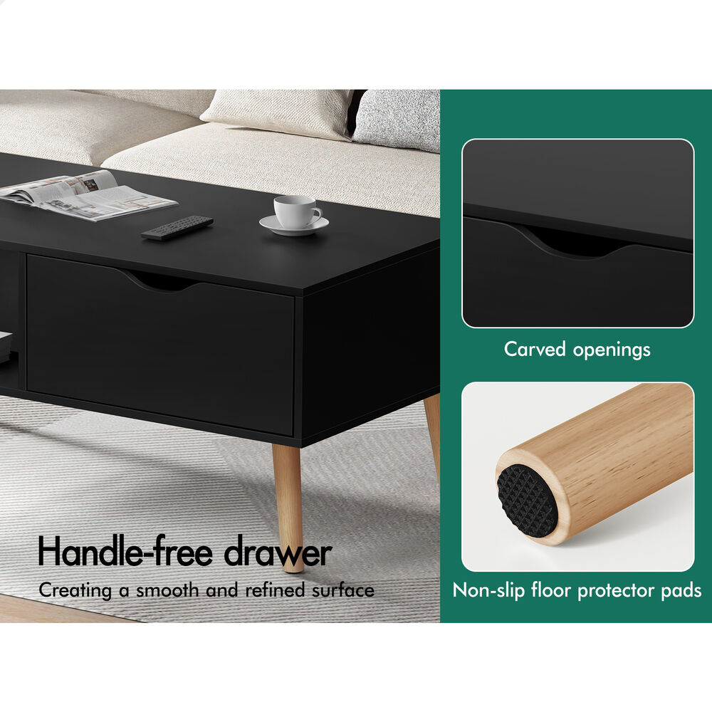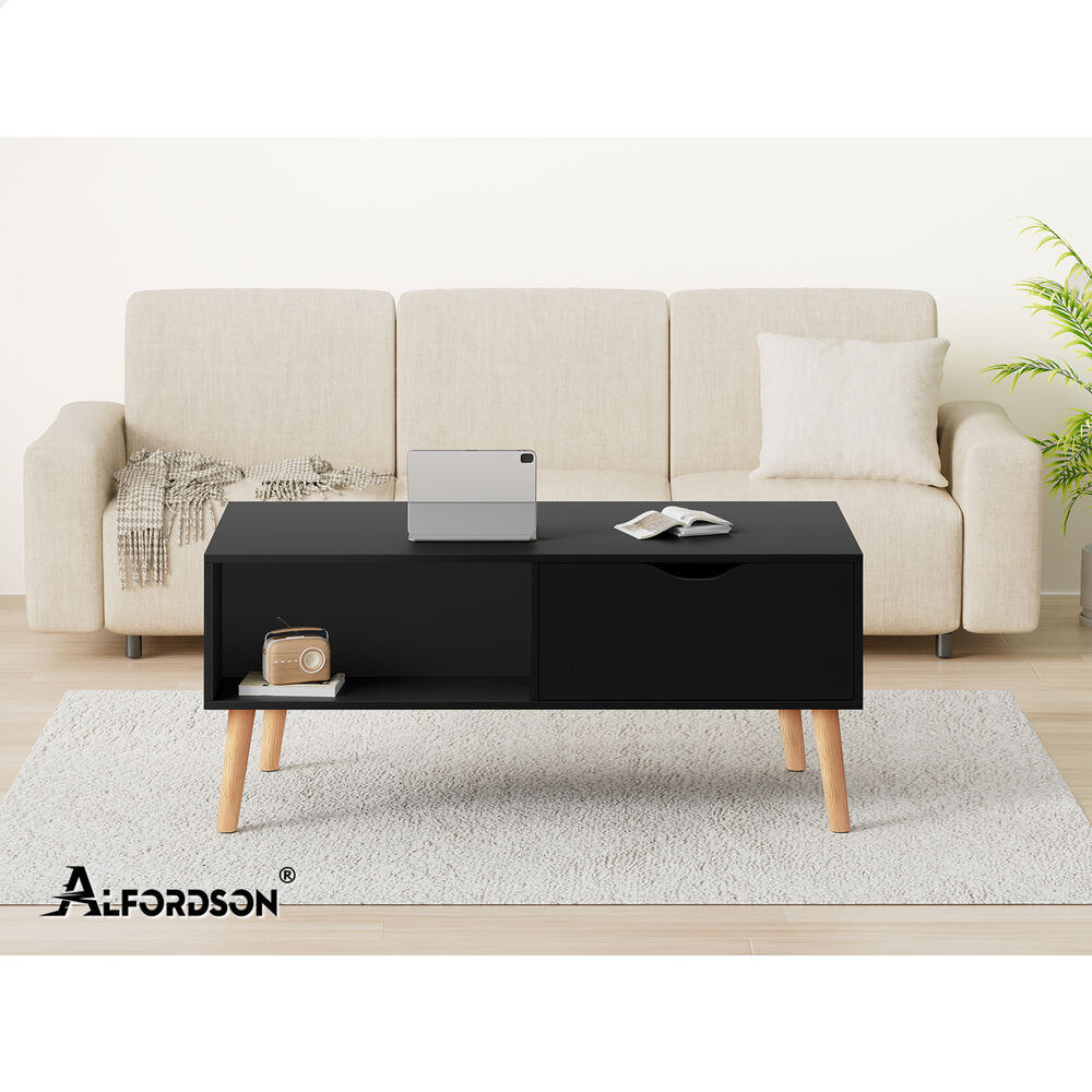 ALFORDSON Coffee Table Storage Tables 2 Drawers Shelf Modern Desk Black