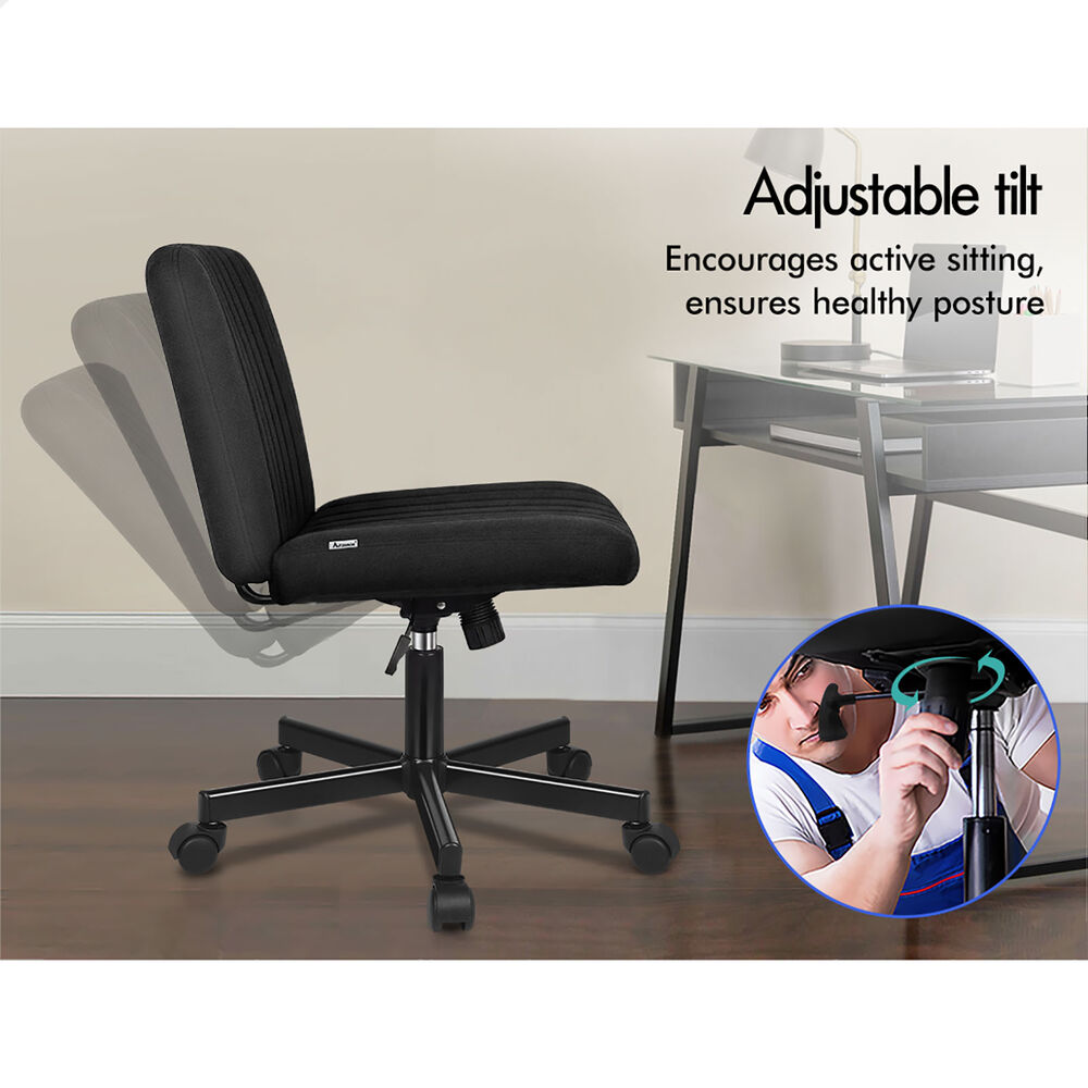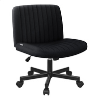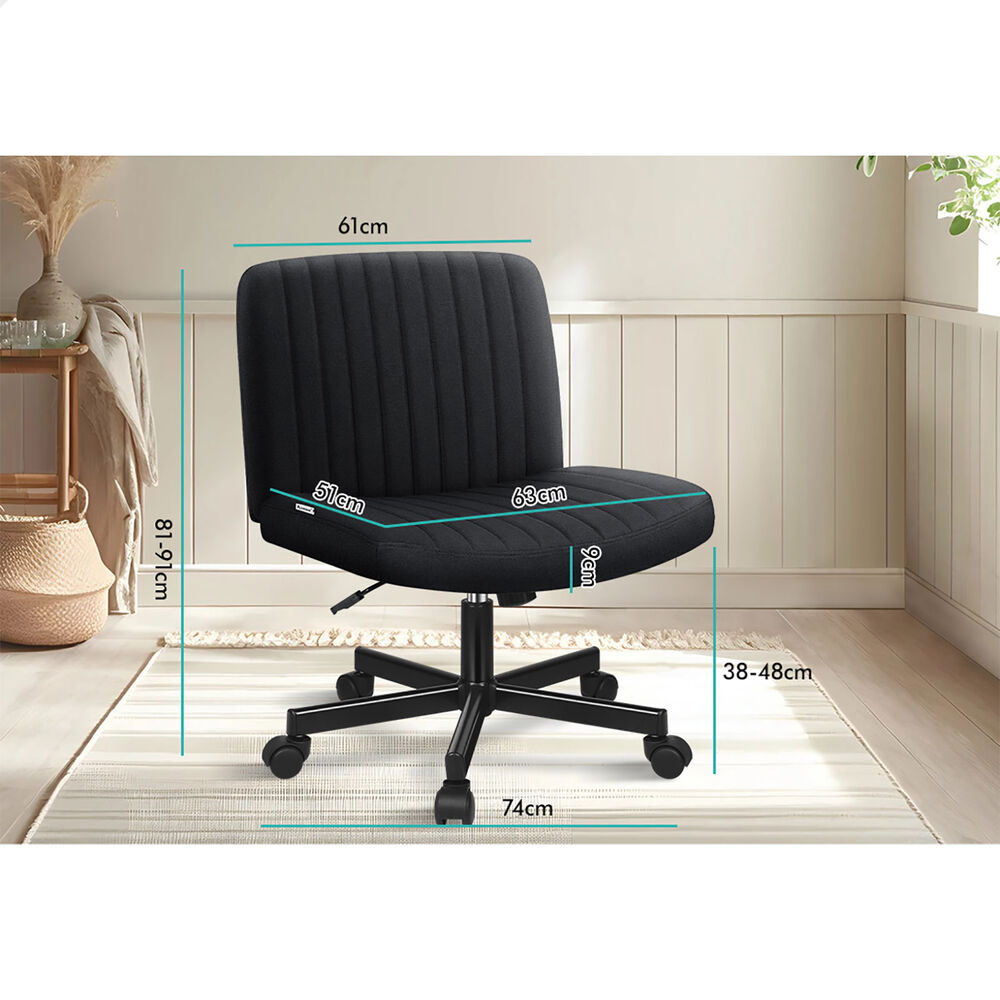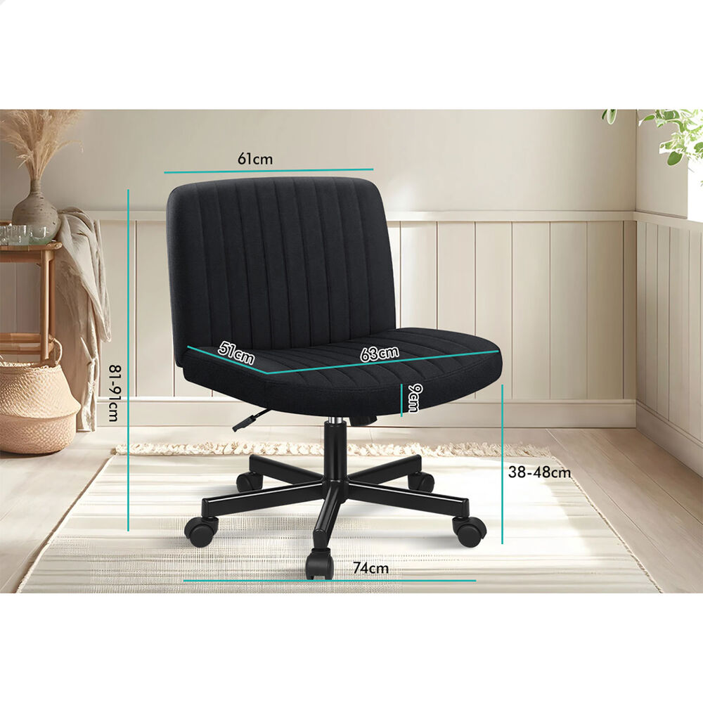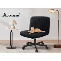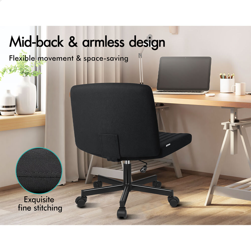 Alfordson Criss Cross Legged Office Chair with Wheels Fabric Armless Swivel Vanity Chair Black