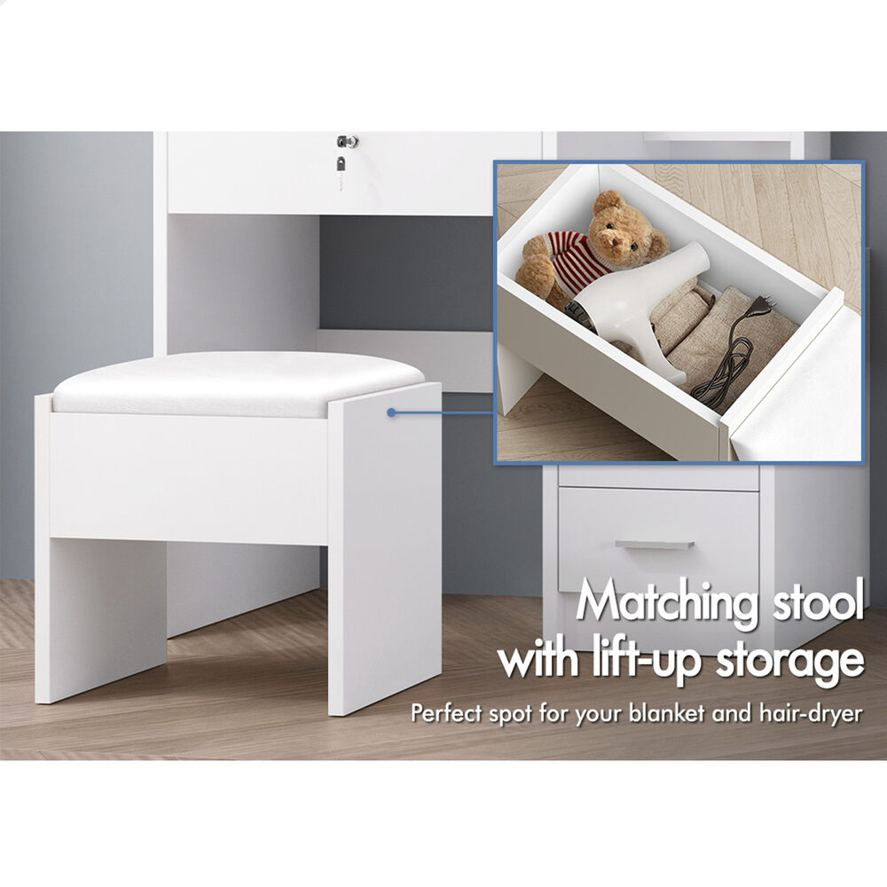 Comes with matching chair - The matching upholstered stool will provide you with a comfortable sitting position while applying make-up. Furthermore, the chair comes with lift-up lid for easy storage, which is a perfect spot for your blanket or hair-dryer.