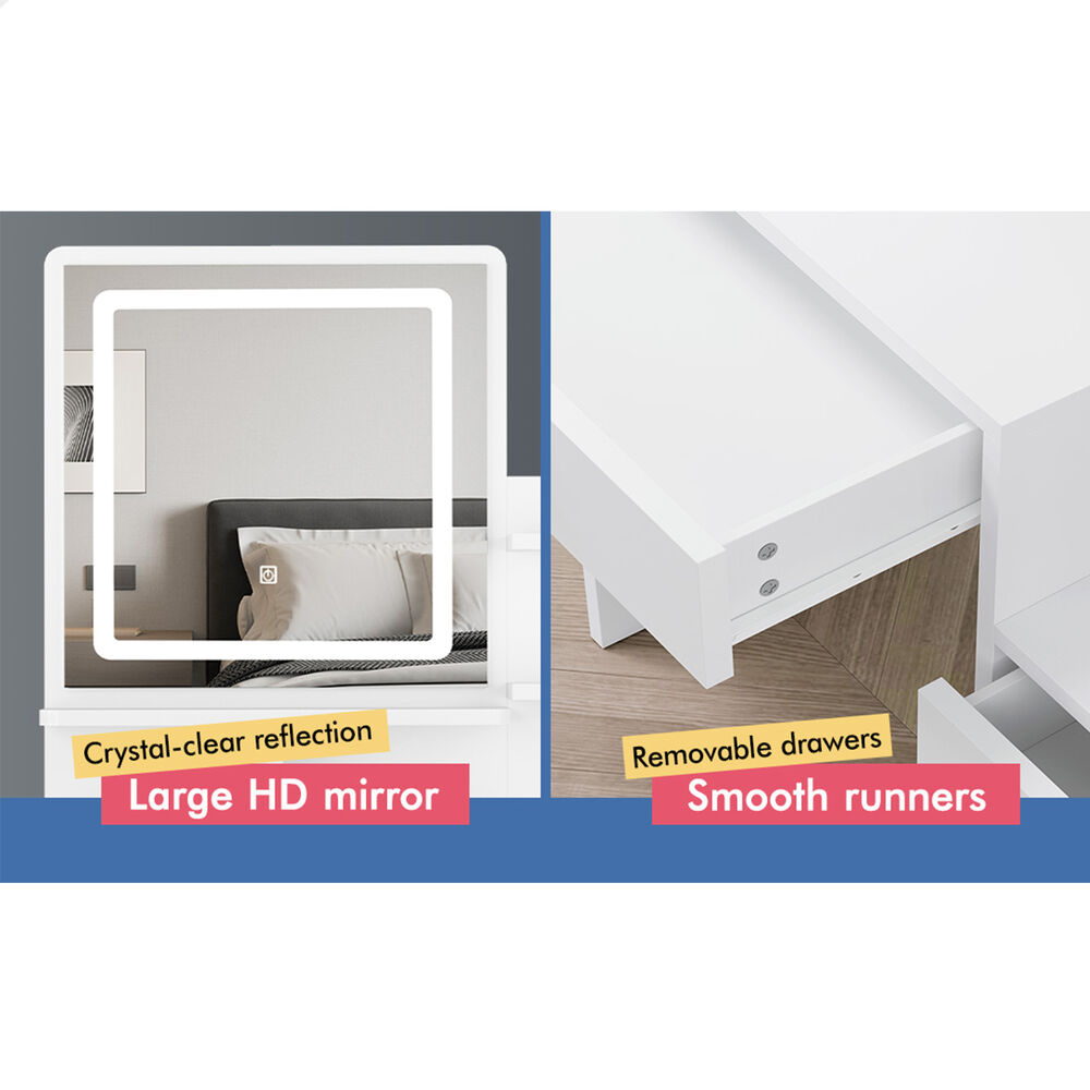 ALFORDSON Dressing Table Stool Set LED Makeup Mirror Vanity Desk Cabinet White