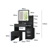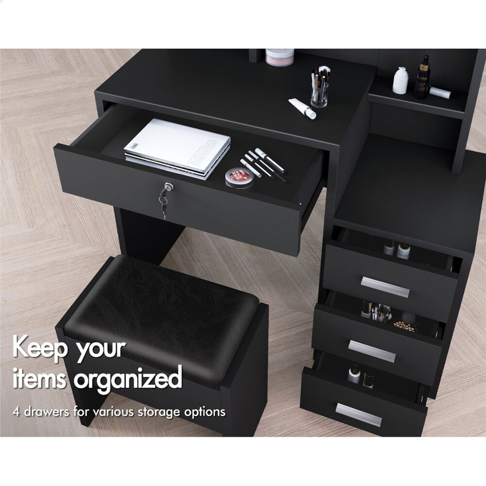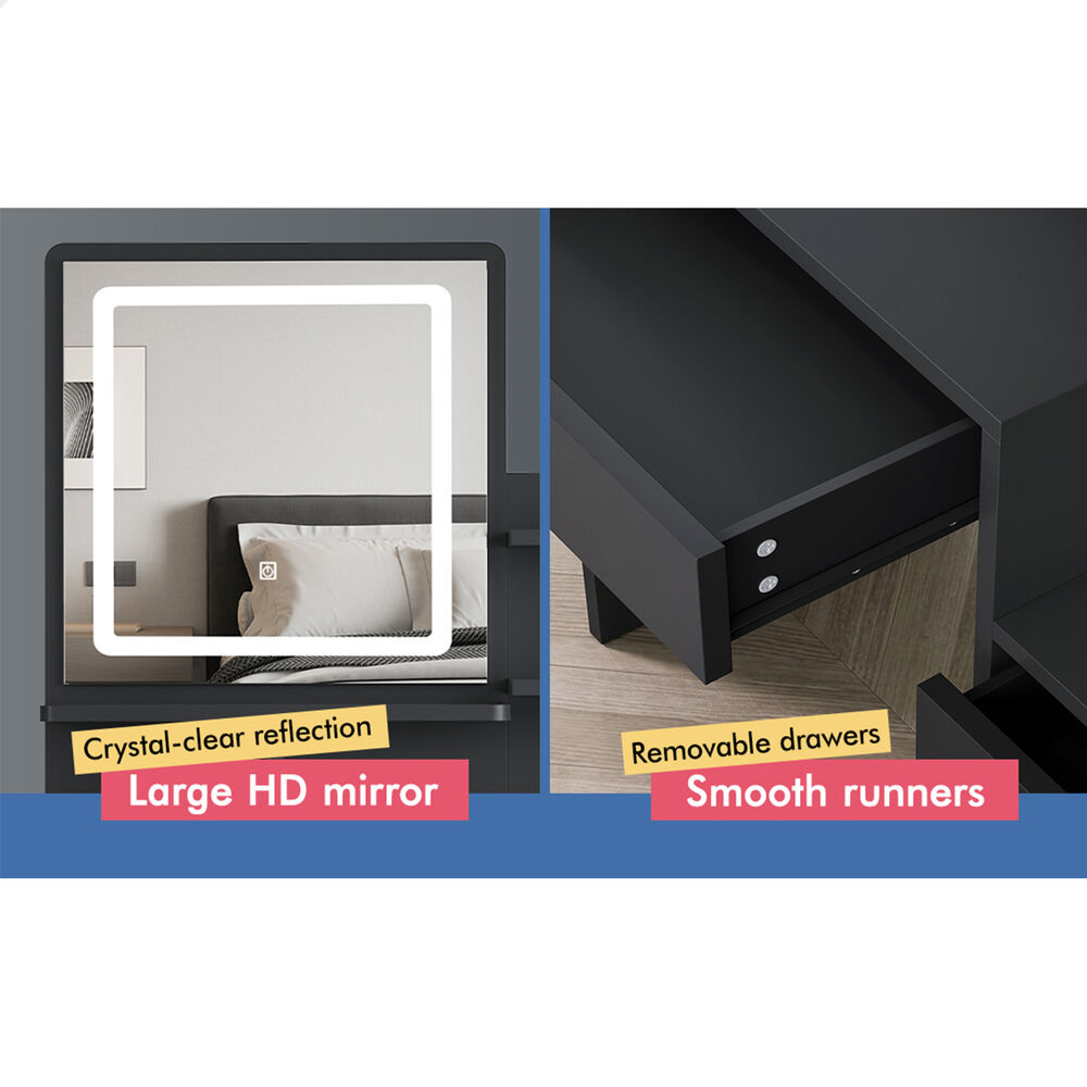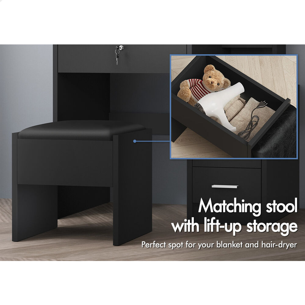 ALFORDSON Dressing Table Stool Set LED Makeup Mirror Vanity Desk Cabinet Black