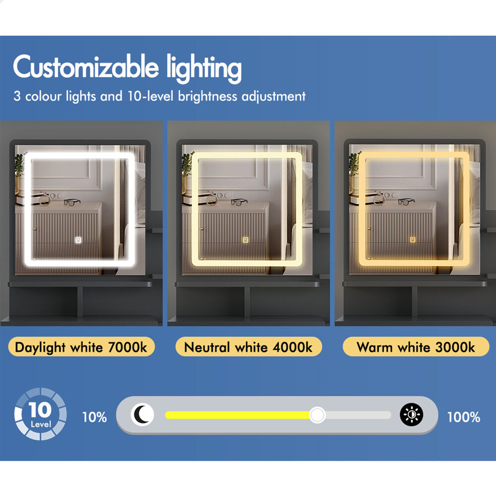 Customizable lighting - Good lighting is important to achieve your perfect glam look. The dressing table features 3 LED light colours - neutral white, warm white, and daylight white and the brightness of each colour can be adjusted in 10 levels, providing adequate light to complete your make-up.