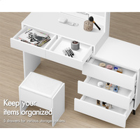 Keep your items organized - It features 5 drawers in different sizes and 2 open shelves for various storage options. For items you want to access easily, like make-up products, lotions, or perfumes, you can simply put them on desktop of table. For other items, like jewellery, you can store them away in drawers so they won't gather dust.