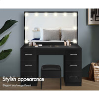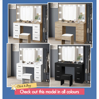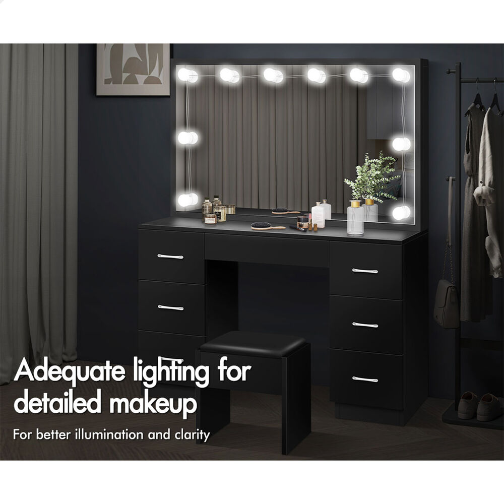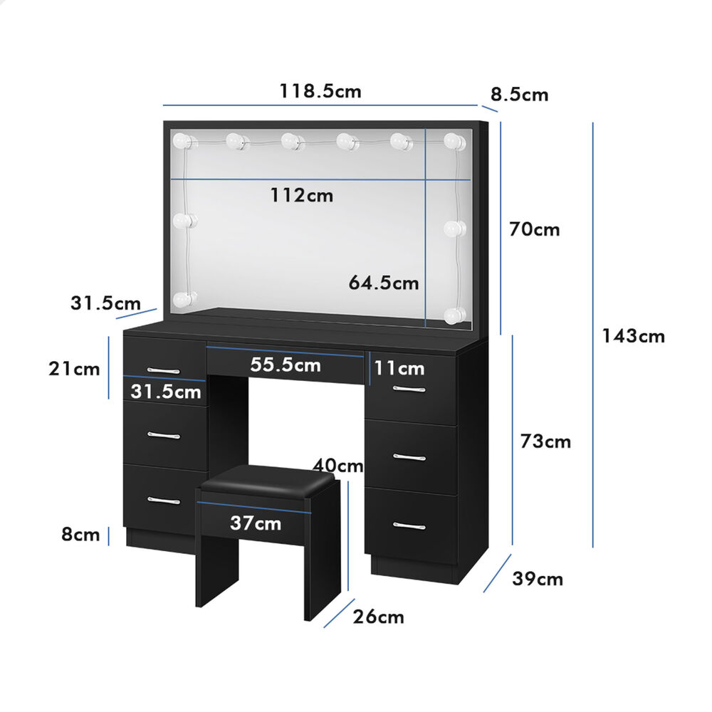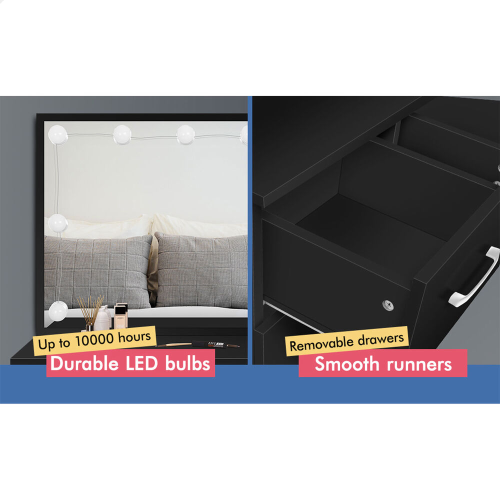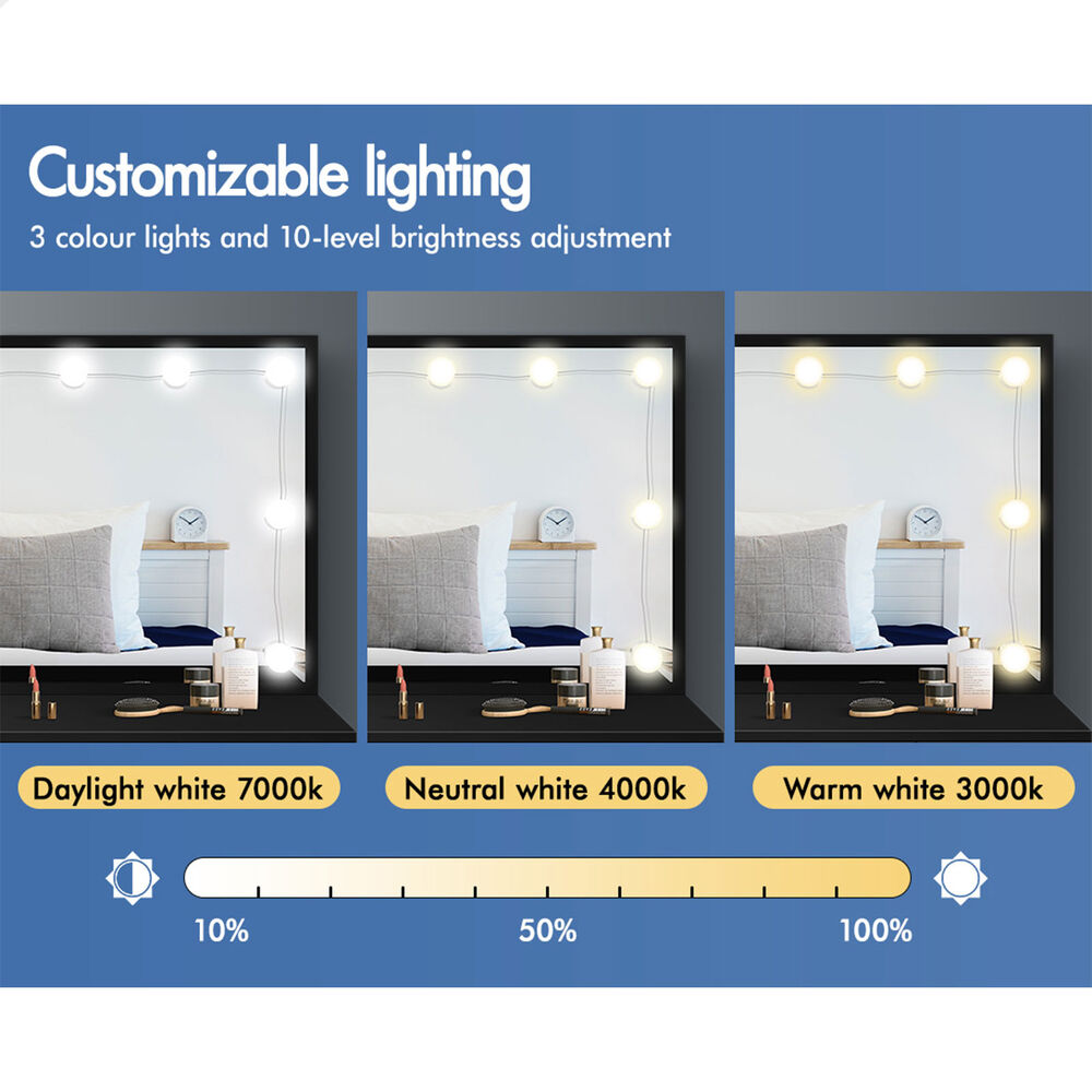 ALFORDSON Dressing Table Stool Set Makeup Mirror Desk LED 10 Bulbs Black