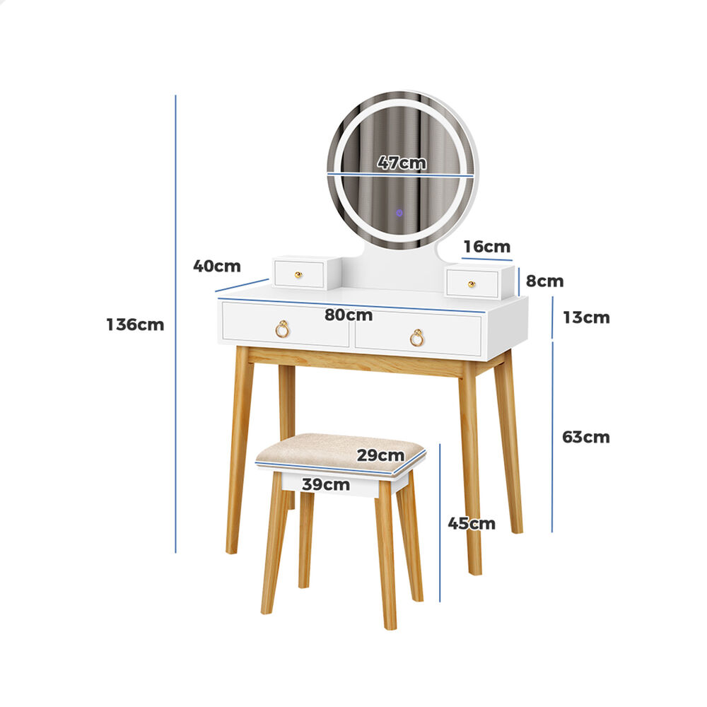 Customizable lighting - Good lighting is important to achieve your perfect glam look. The dressing table features 3 LED light colours - neutral white, warm white, and daylight white and the brightness of each colour can be adjusted in 10 levels, providing adequate light to complete your make-up.