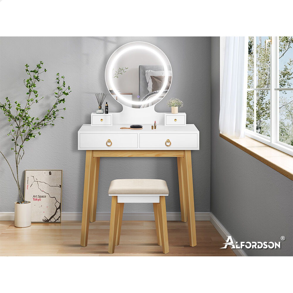 ALFORDSON Dressing Table Stool Set Makeup Mirror Vanity Desk LED Light White