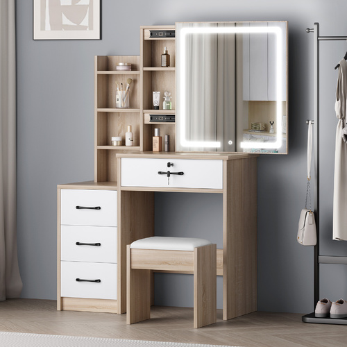 Keep your items organized - It features open shelves, 4 drawers and hidden shelving for ample storage space. For items you want to access easily, like make-up products, lotions, or perfumes, you can simply put them on desktop of table. For other items, like jewellery, you can store them away in drawers so they won't gather dust. Featuring a side cabinet, this dressing table can serve as nightstand next to your bed for use.