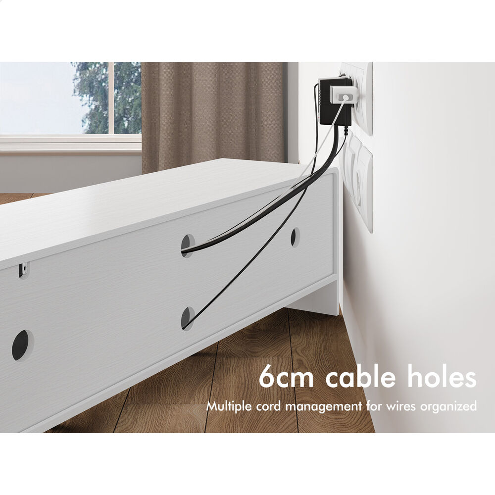 Reliable quality - Made of superior E1 grade and 15mm thick particle board, our entertainment unit is durable and resistant to scratches. Instead of flimsy paper finish, it is well made with smooth melamine finish which is easy to maintain and long lasting. Equipped with magnetic switch, the cabinets quietly open and close so you can access your items with ease.
