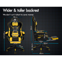 ALFORDSON Gaming Chair 2-point Massage Lumbar Pillow Xavier Black & Yellow