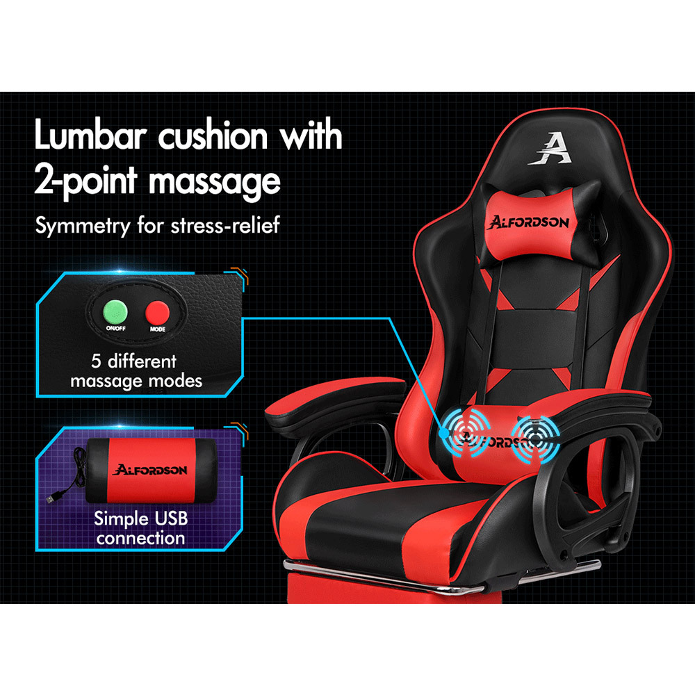 ALFORDSON Gaming Chair 2-point Massage Lumbar Pillow Xavier Black & Red