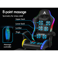 ALFORDSON Gaming Chair Office Massage 12 RGB LED Computer Seat PU Leather Black