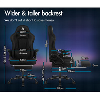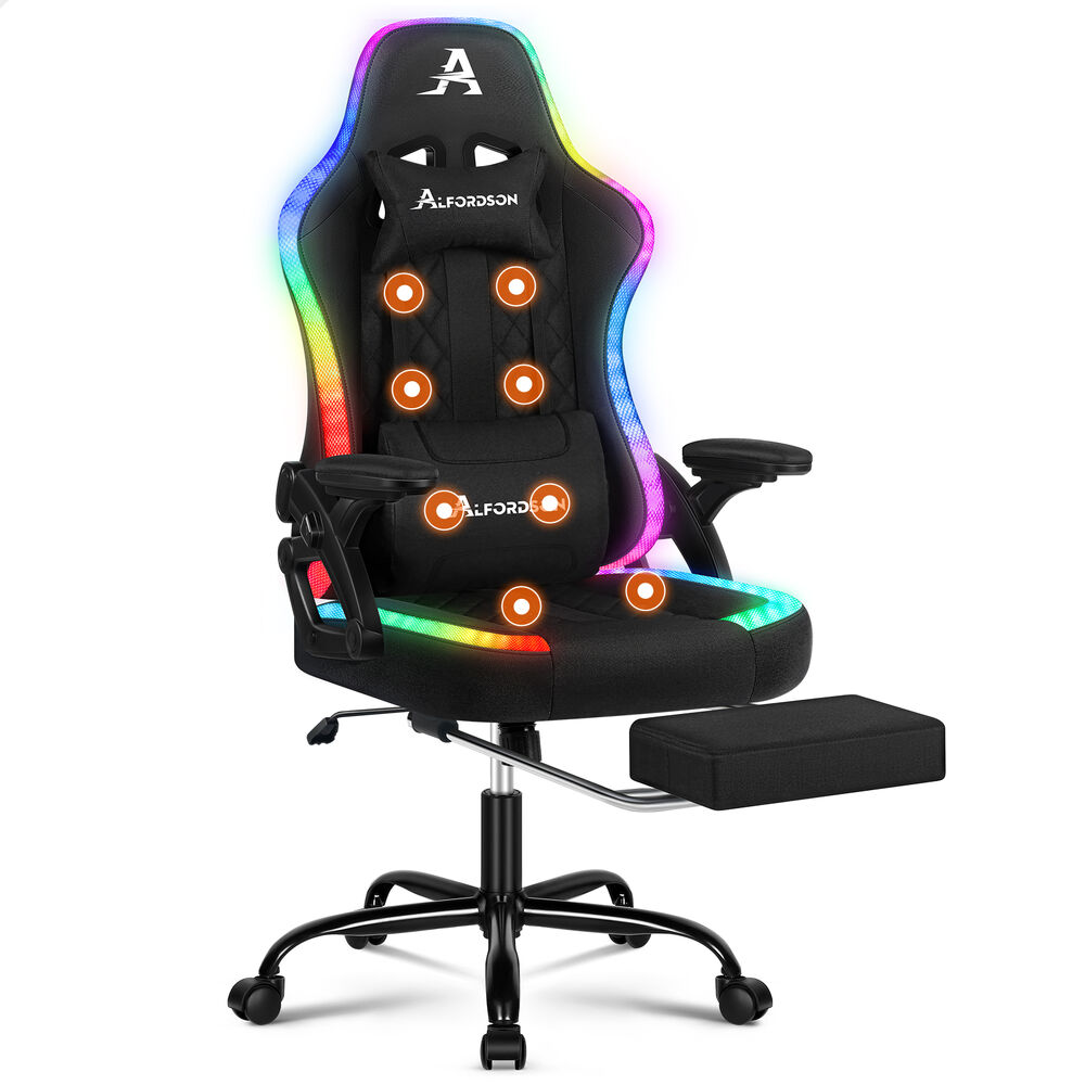 ALFORDSON Gaming Chair Office Massage 12 RGB LED Computer Fabric Black