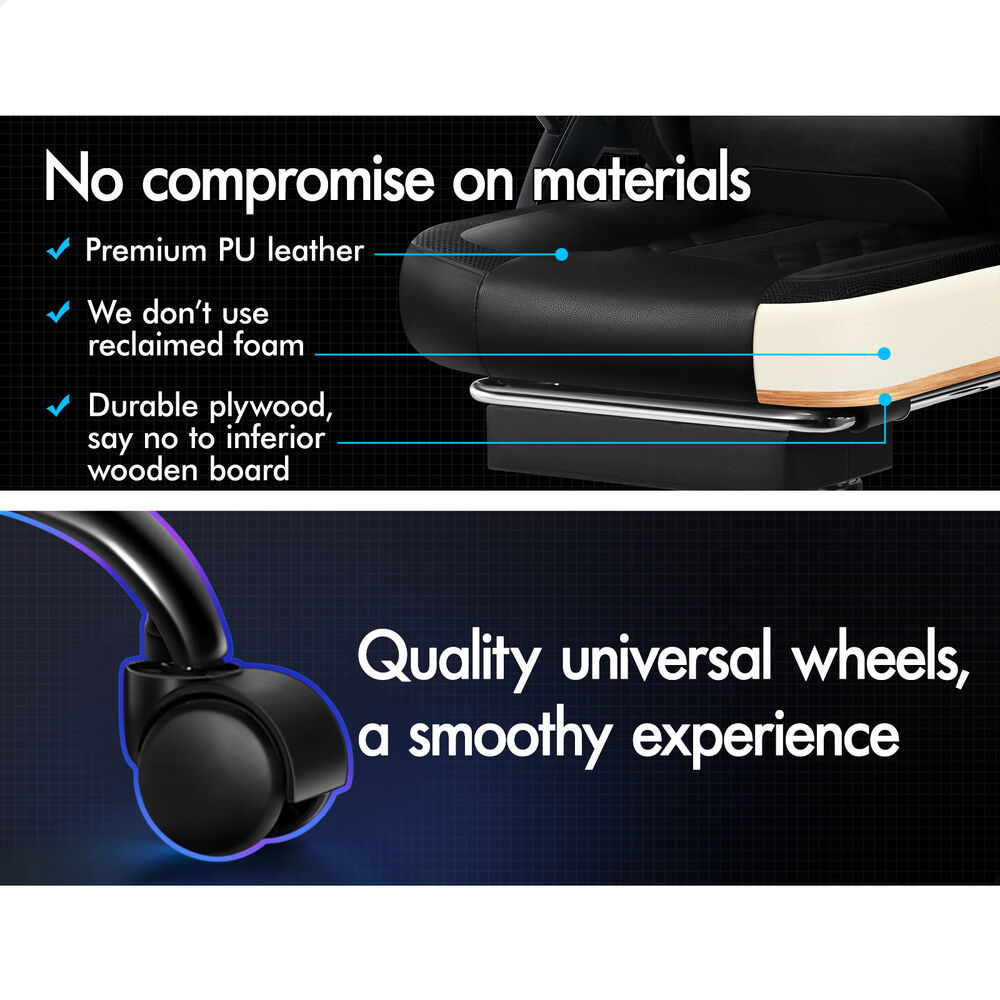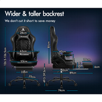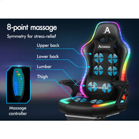 ALFORDSON Gaming Chair Office Massage 12 RGB LED Computer Seat Leather All Black