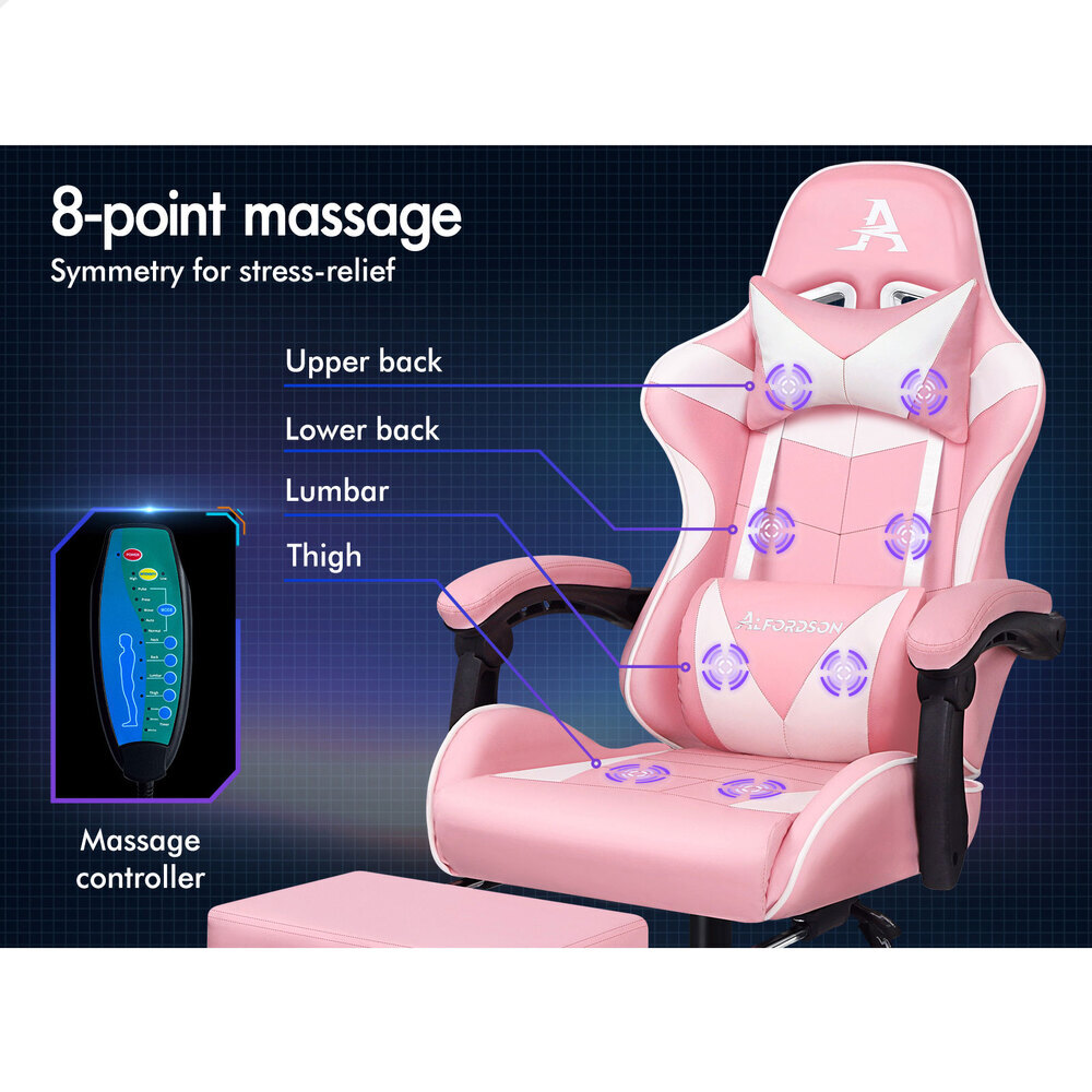 ALFORDSON Gaming Chair Office Massage Computer Racing Seat PU Leather Pink