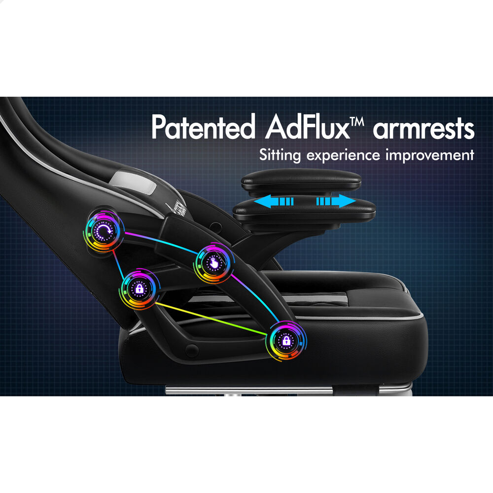 Features a 53cm wider wingless seat which unleashes extra spacious seating for all-day gaming comfort while maintaining ergonomic support. We have also introduced the patented AdFlux™ armrests that provide easy adjustment, enabling you to achieve your desired sitting position and lock it at you wish.