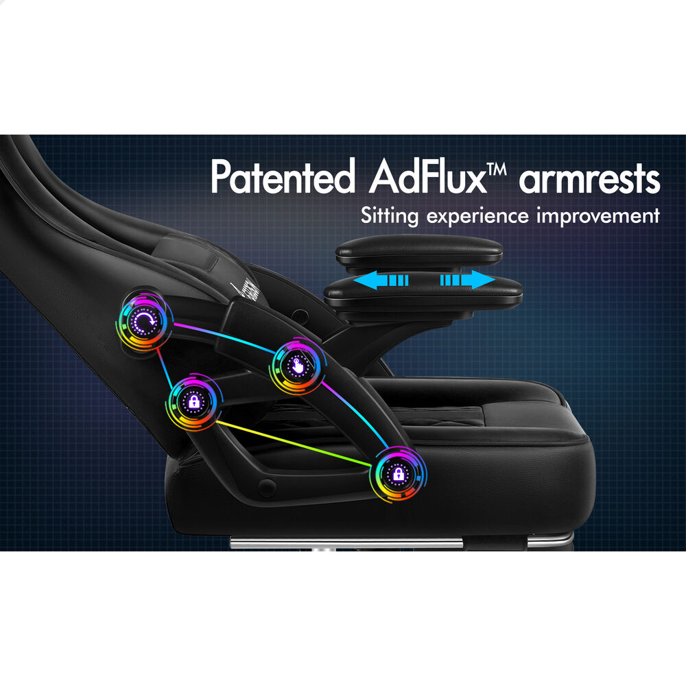 Features a 53cm wider wingless seat which unleashes extra spacious seating for all-day gaming comfort while maintaining ergonomic support. We have also introduced the patented AdFlux™ armrests that provide easy adjustment, enabling you to achieve your desired sitting position and lock it at you wish.