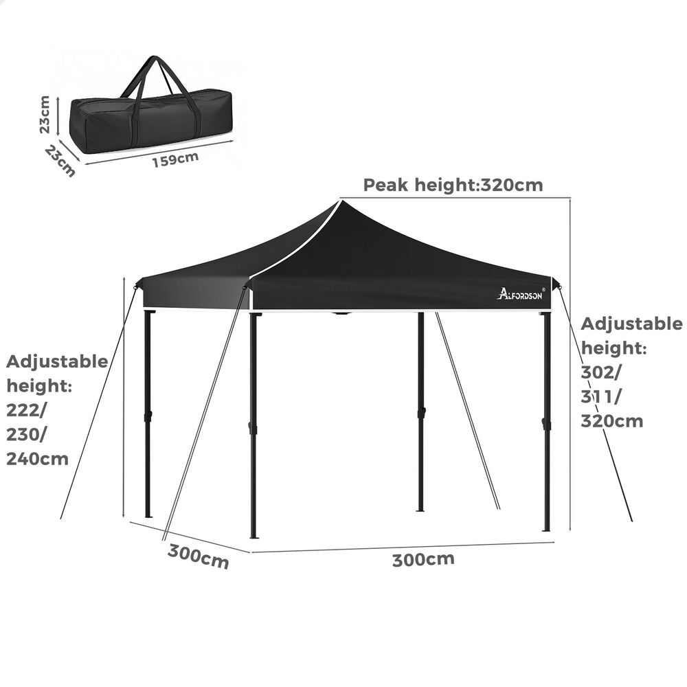 ALFORDSON Gazebo 3x3M Pop Up Marquee 600D Oxford Camping Folding Tent Black